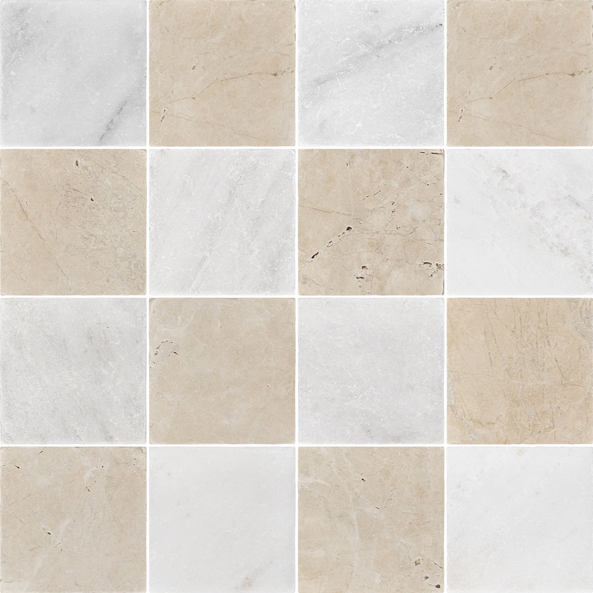 Pearl White 4" x 4" Tumbled & Vanilla Royale 4" x 4" Tumbled Checkerboard Board
