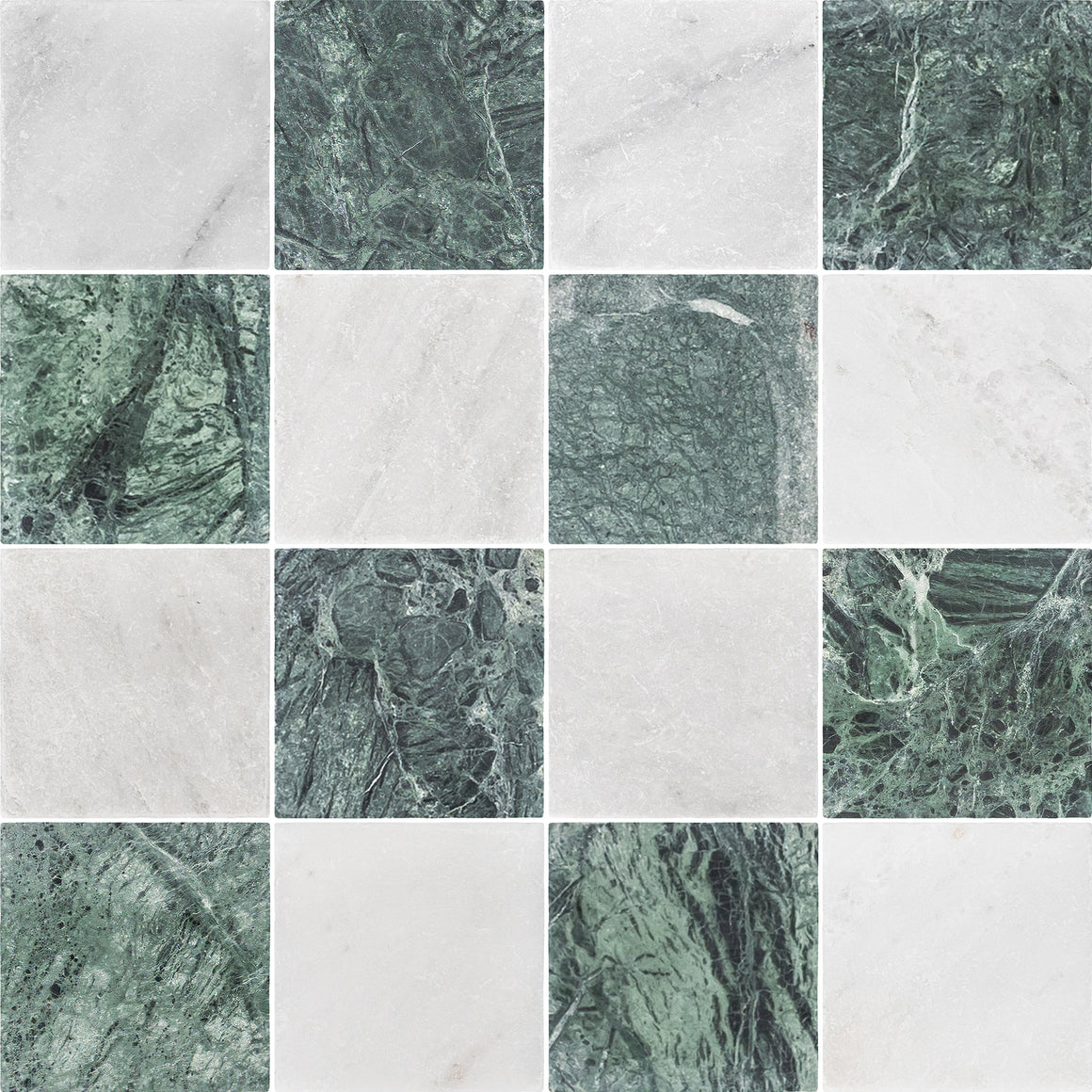 Pearl White 4" x 4" Tumbled & Notte Verde 4" x 4" Tumbled Checkerboard Board