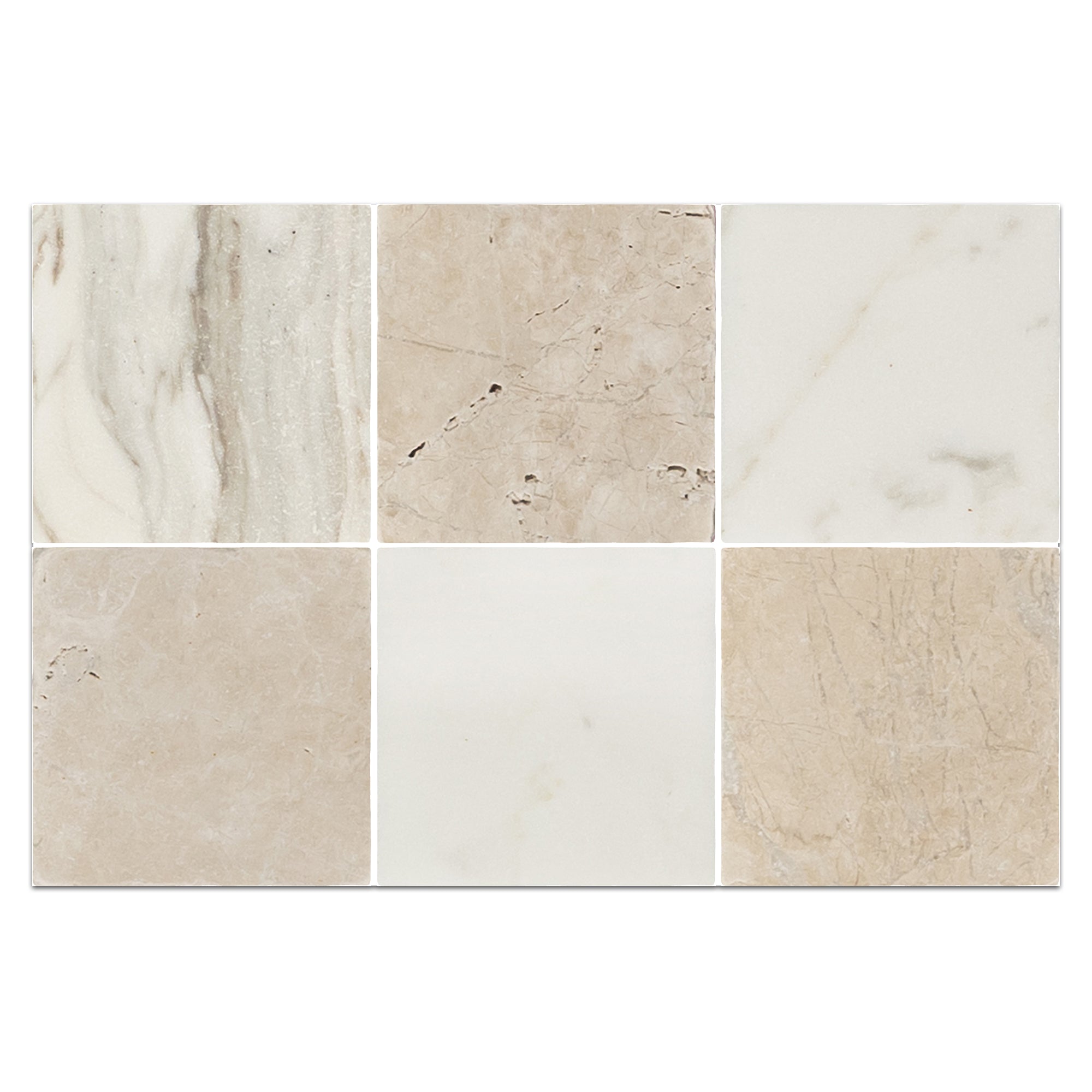 Calacatta Gold 4" x 4" Tumbled & Vanilla Royale 4" x 4" Tumbled Checkerboard Board