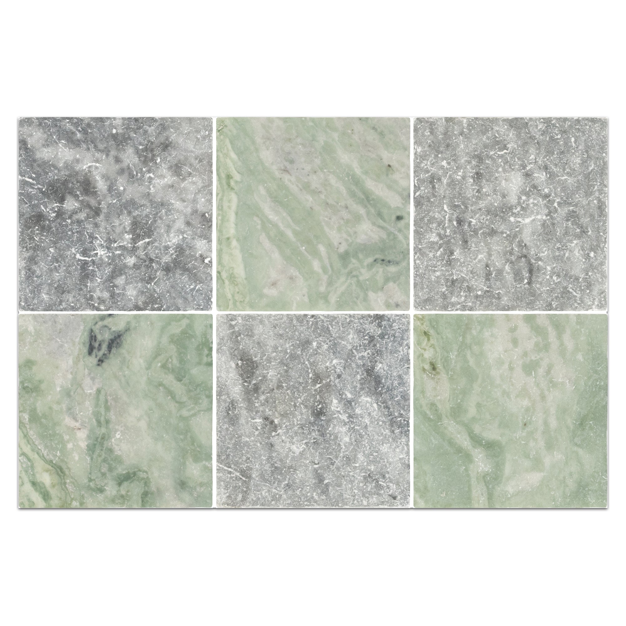 Bardiglio Nuvolato 4" x 4" Tumbled & Emerald Green 4" x 4" Tumbled Checkerboard Board