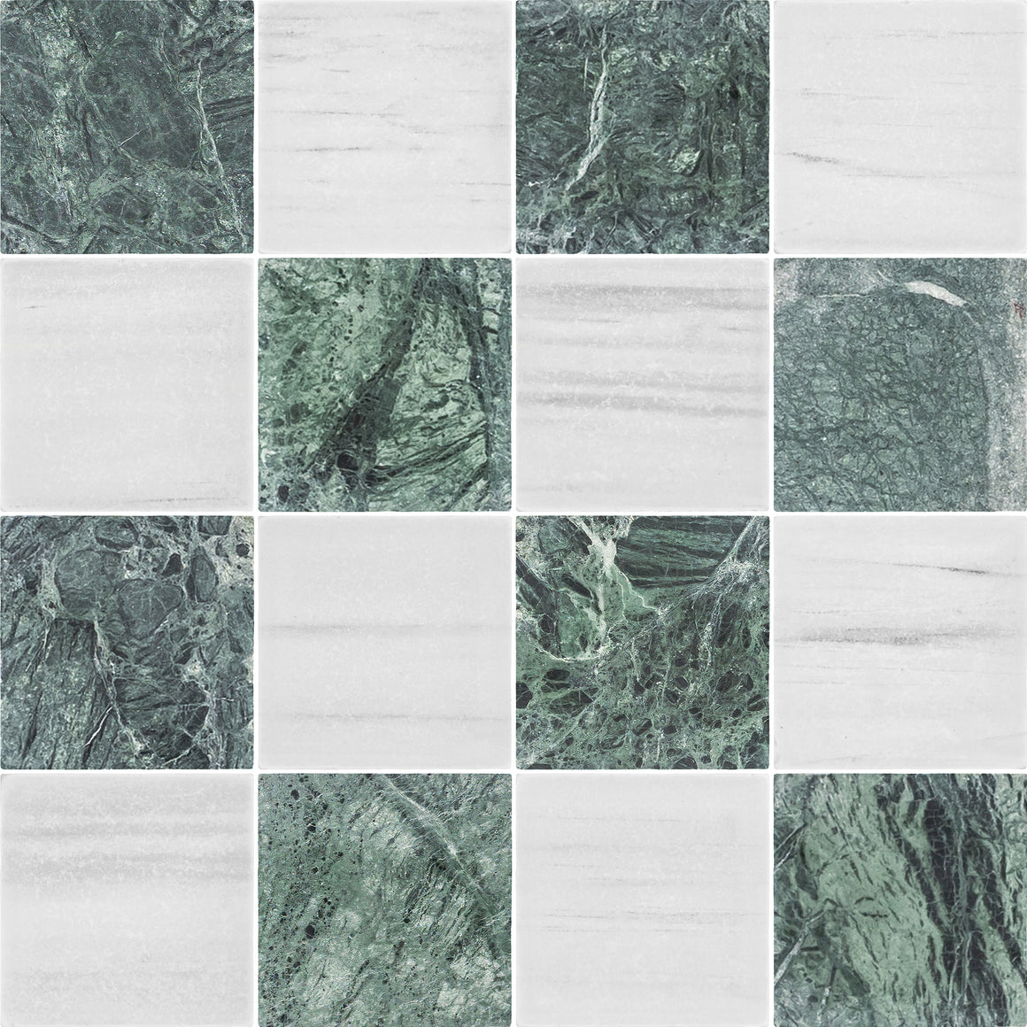 Notte Verde 4" x 4" Tumbled & Dolomite 4" x 4" Tumbled Checkerboard Board