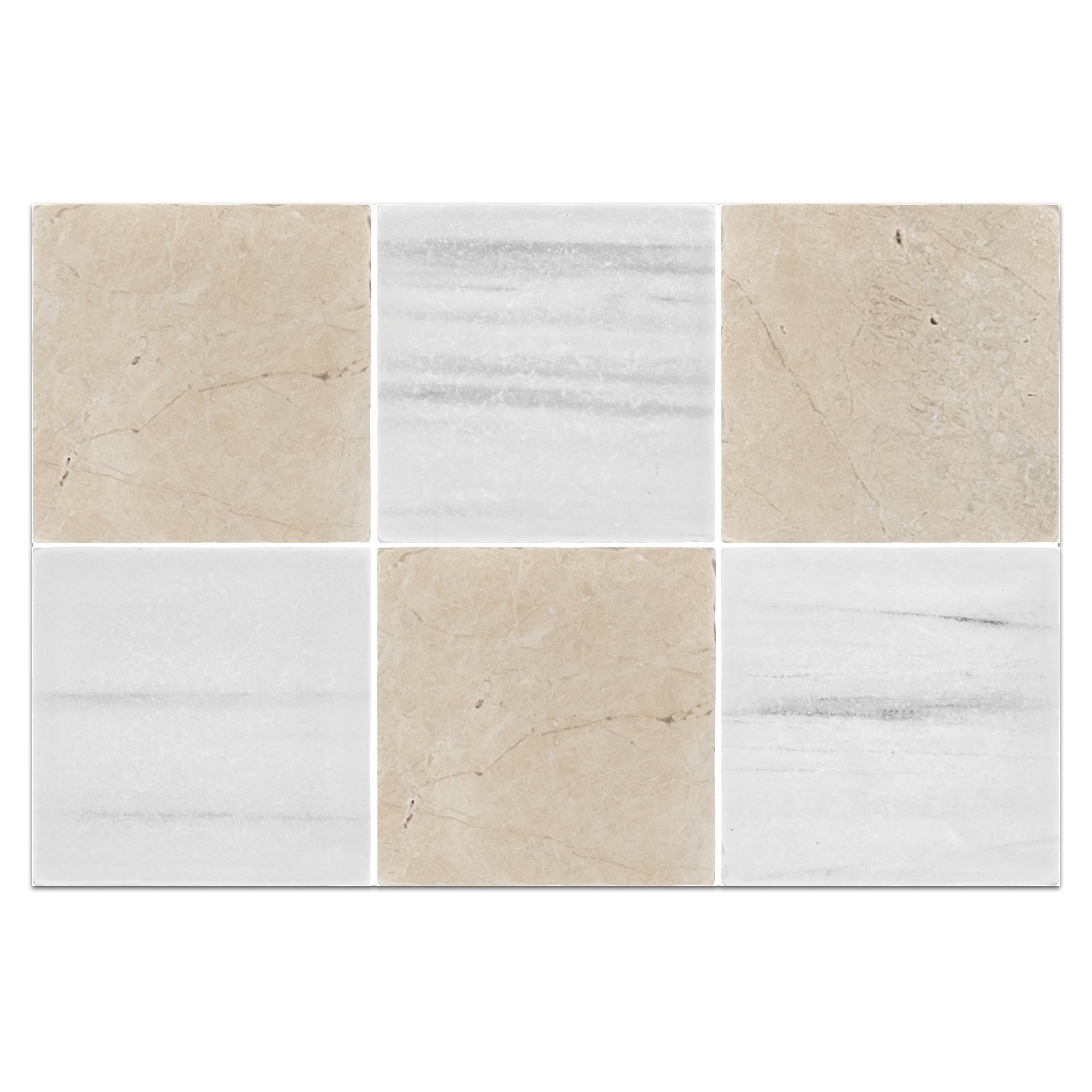 Vanilla Royale 4" x 4" Tumbled & Dolomite 4" x 4" Tumbled Checkerboard Board