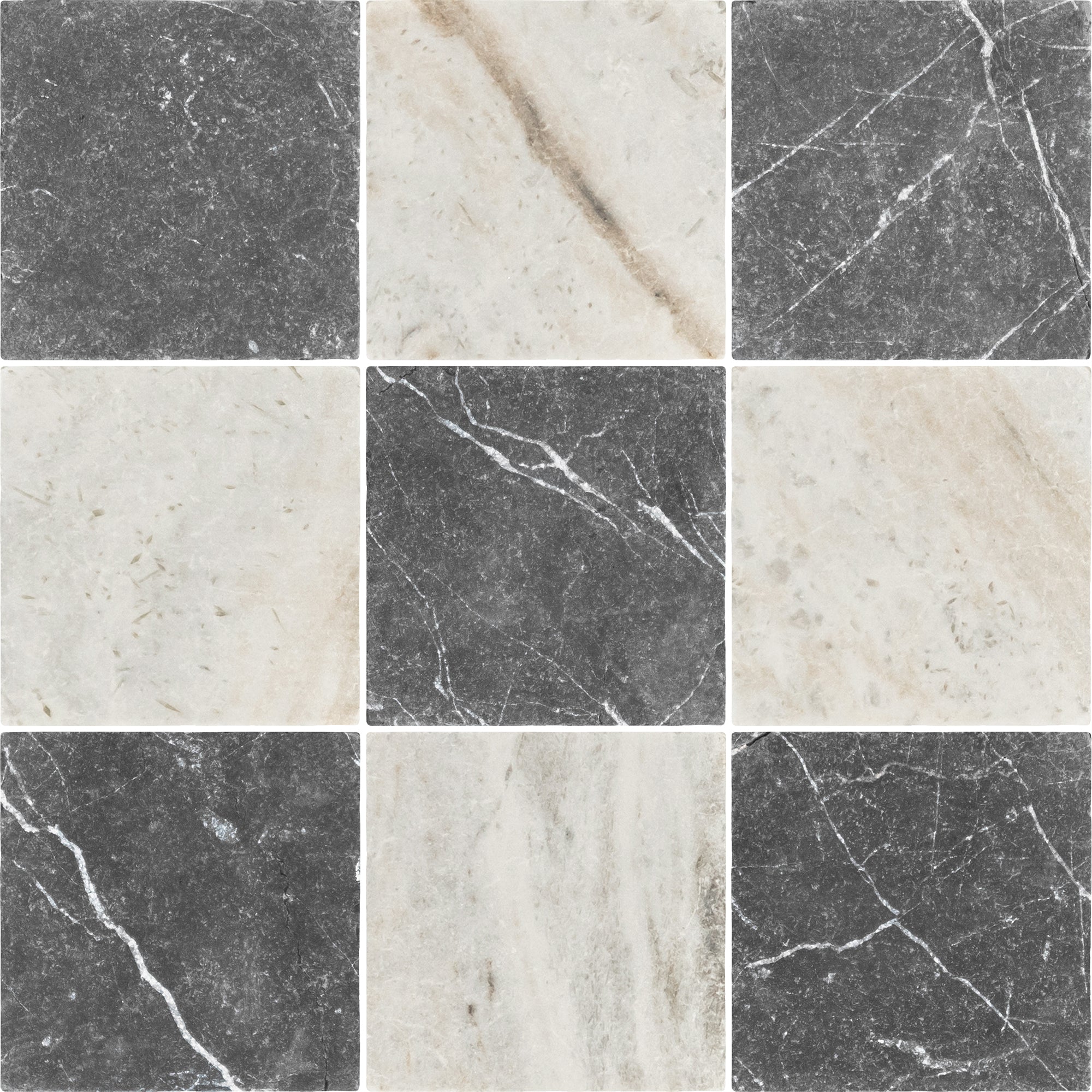 Black Marble 4" x 4" Tumbled & Bianco Oro 4" x 4" Tumbled Checkerboard Board