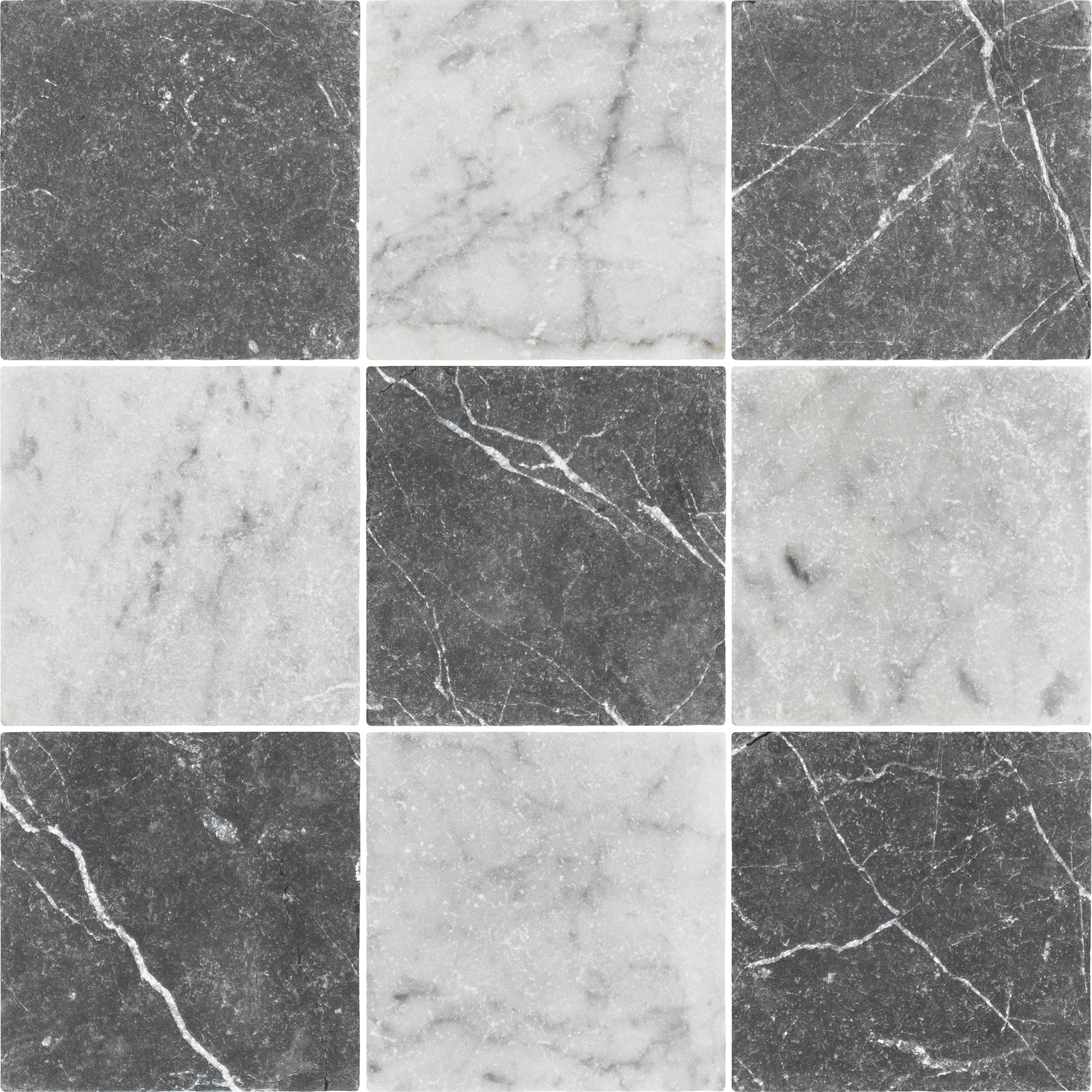 Black Marble 4" x 4" Tumbled & Bianco Carrara 4" x 4" Tumbled Checkerboard Board