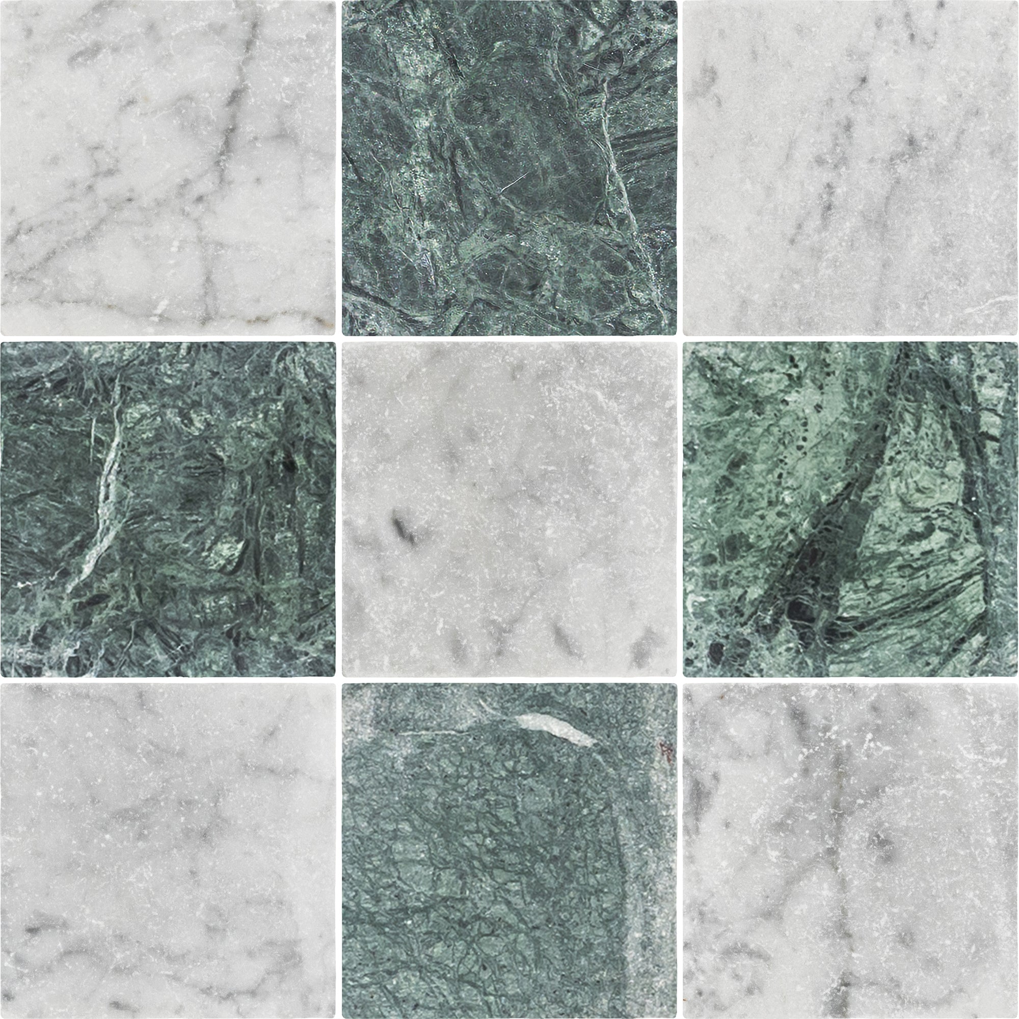 Bianco Carrara 4" x 4" Tumbled & Notte Verde 4" x 4" Tumbled Checkerboard Board