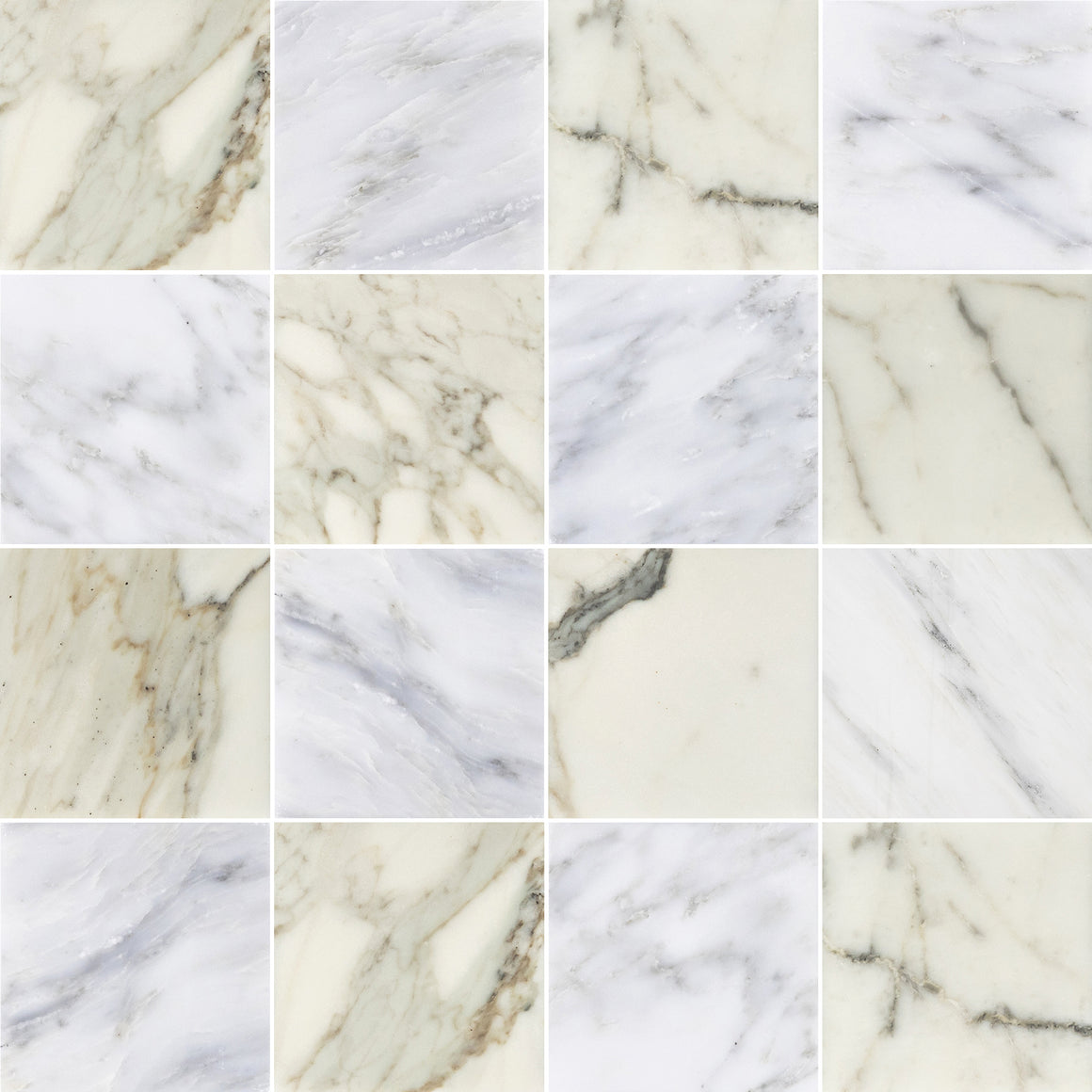 Pearl White 4" x 4" Honed & Calacatta Gold 4" x 4" Honed Checkerboard Board