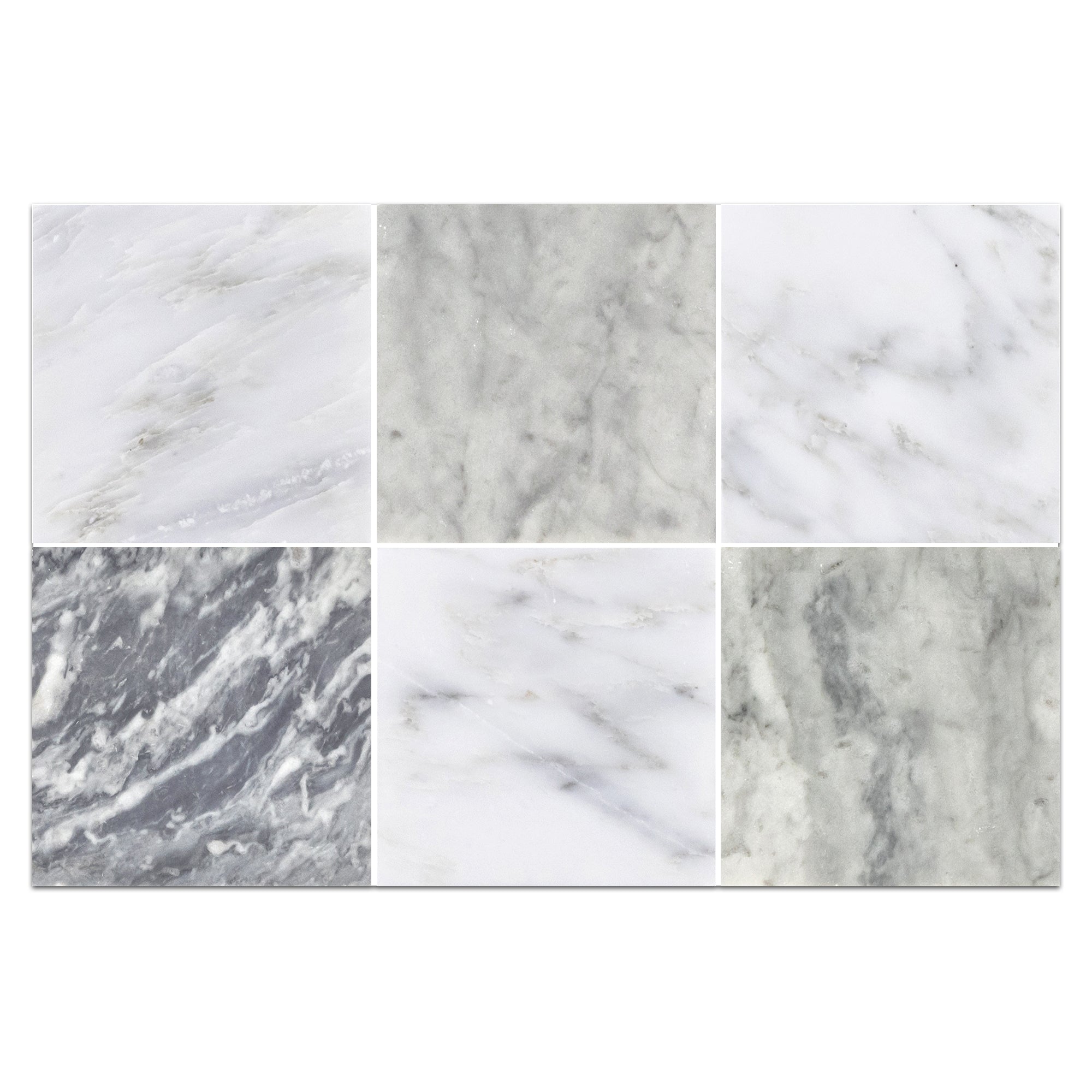Pearl White 4" x 4" Honed & Bardiglio Nuvolato 4" x 4" Honed Checkerboard Board