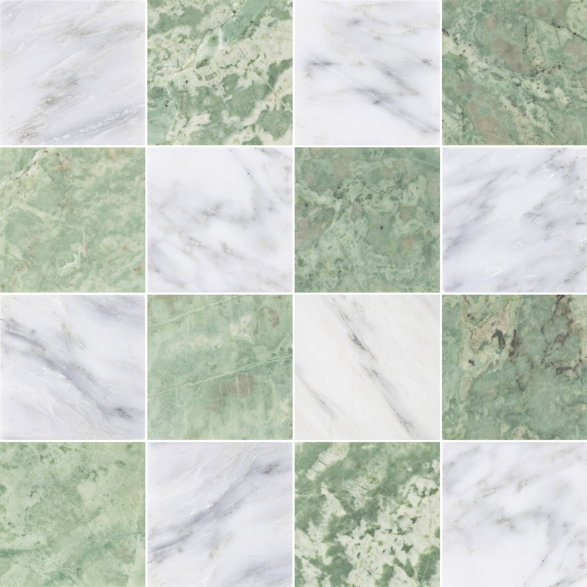 Pearl White 4" x 4" Honed & Emerald Green 4" x 4" Honed Checkerboard Board