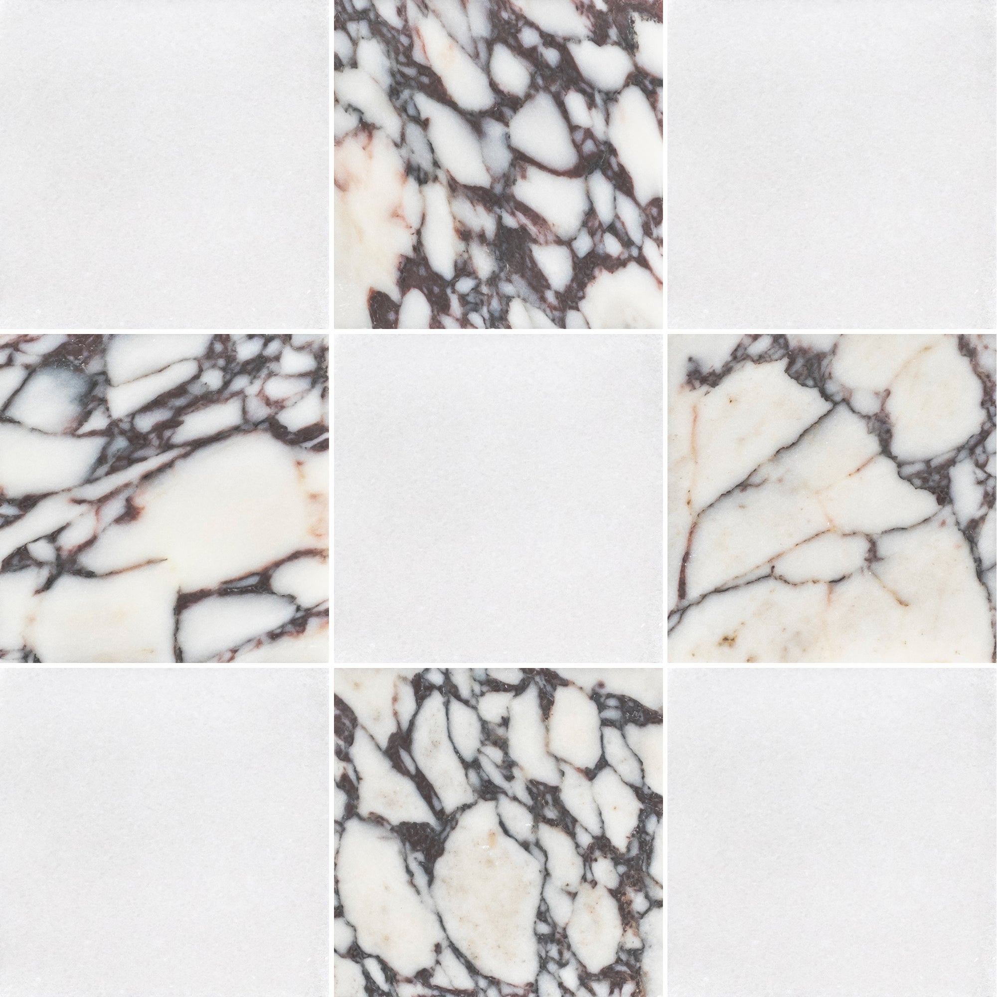 White Thassos 4" x 4" Honed & Bianco Violetta 4" x 4" Honed Checkerboard Board