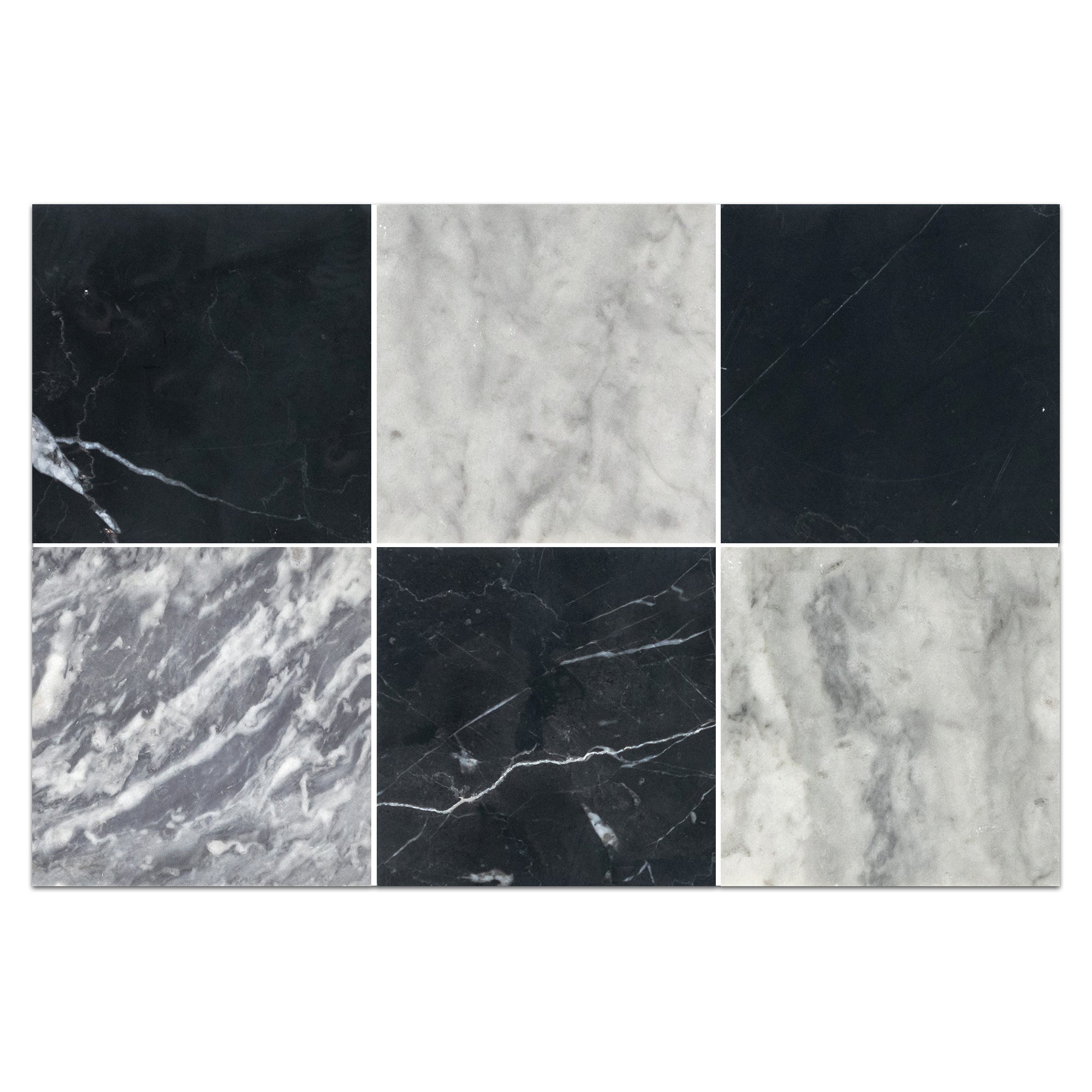 Black Marble 4" x 4" Honed & Bardiglio Nuvolato 4" x 4" Honed Checkerboard Board
