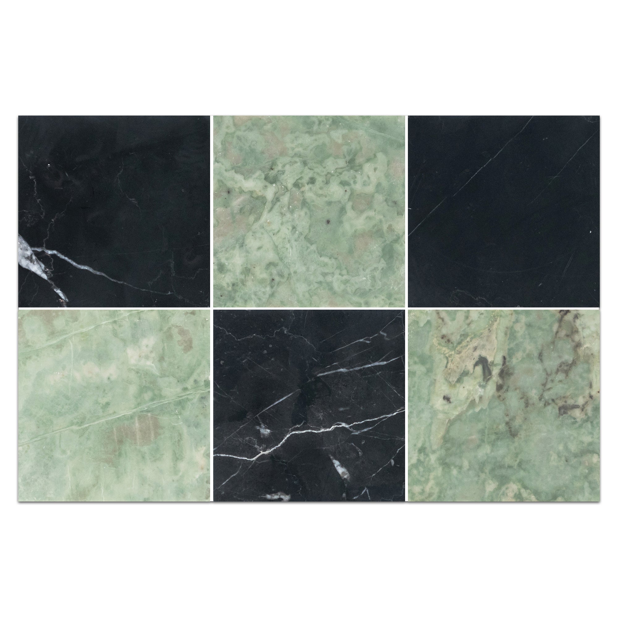 Black Marble 4" x 4" Honed & Emerald Green 4" x 4" Honed Checkerboard Board