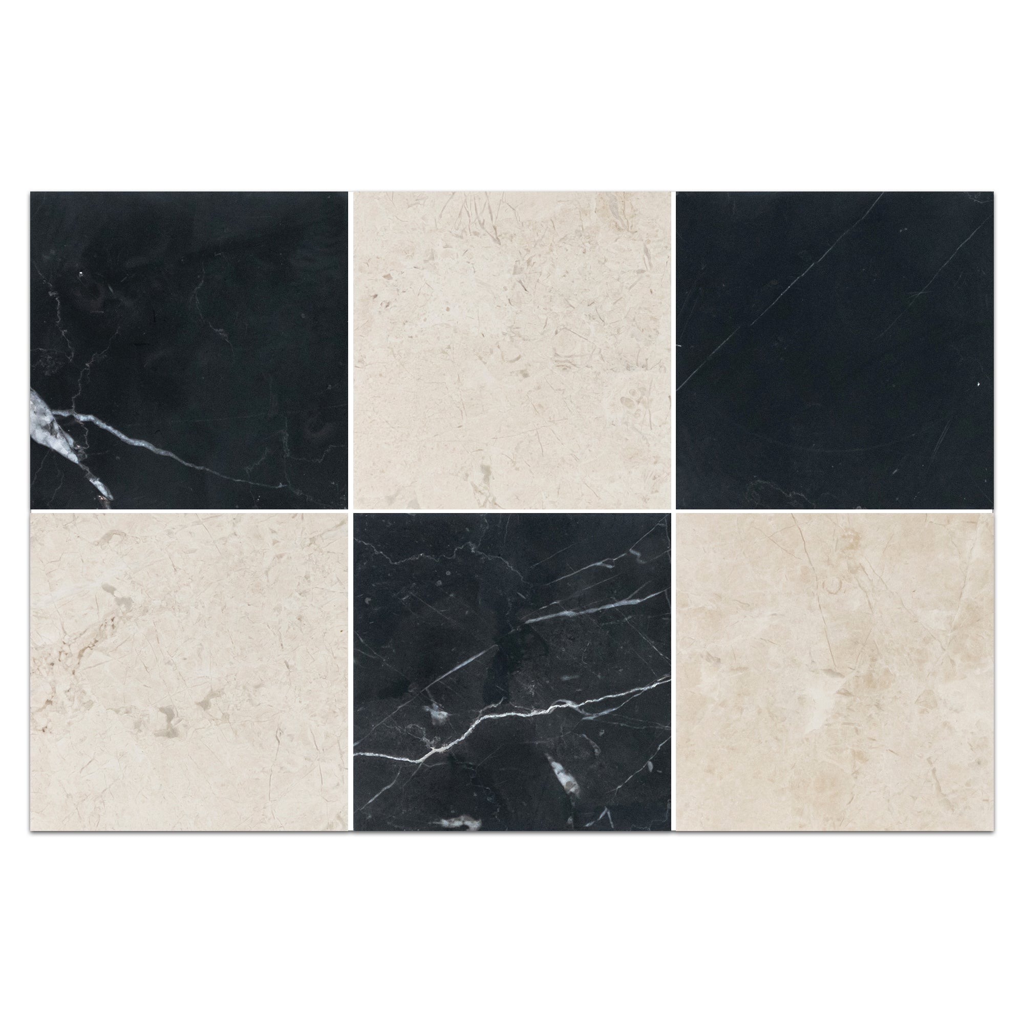 Black Marble 4" x 4" Honed & Vanilla Royale 4" x 4" Honed Checkerboard Board