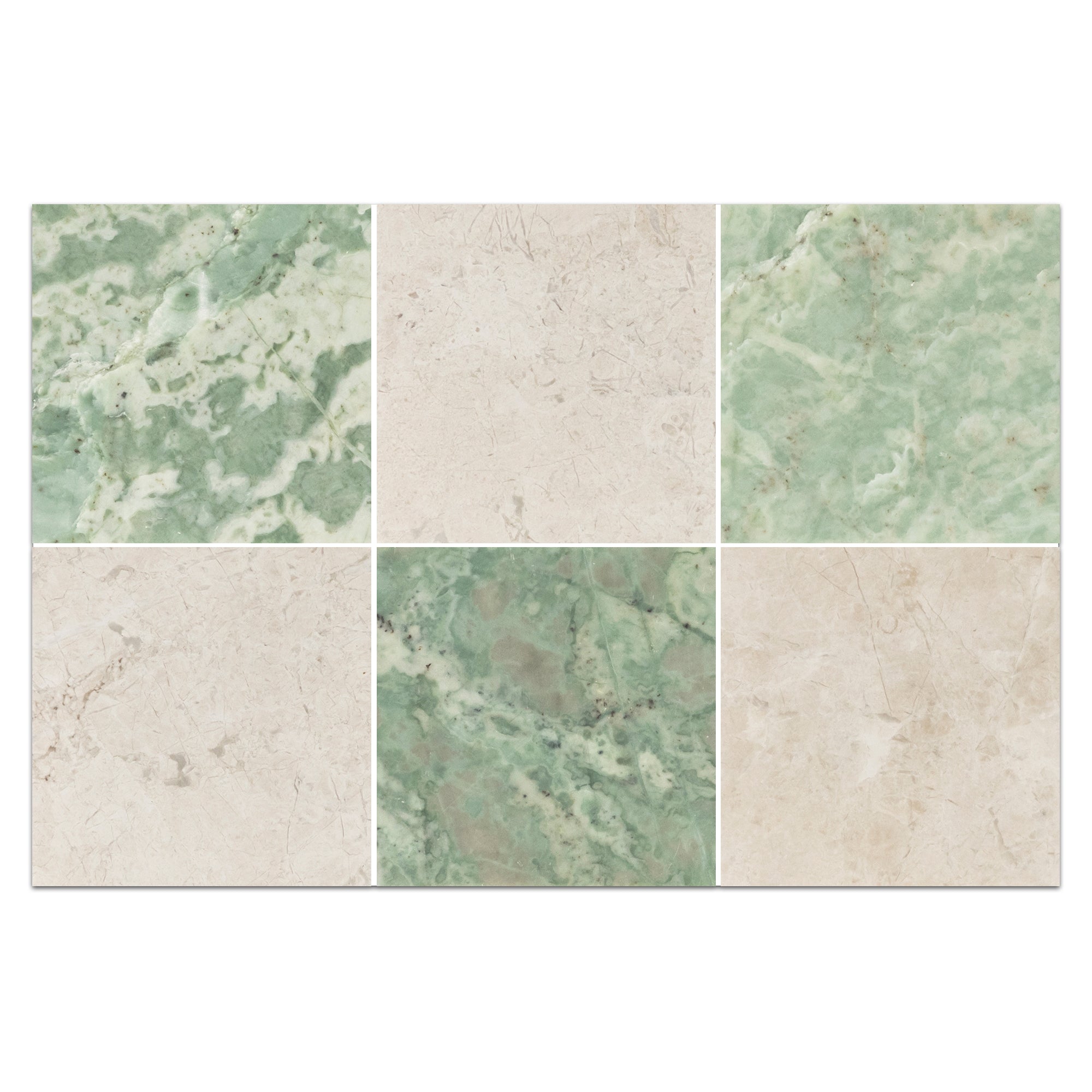 Emerald Green 4" x 4" Honed & Vanilla Royale 4" x 4" Honed Checkerboard Board