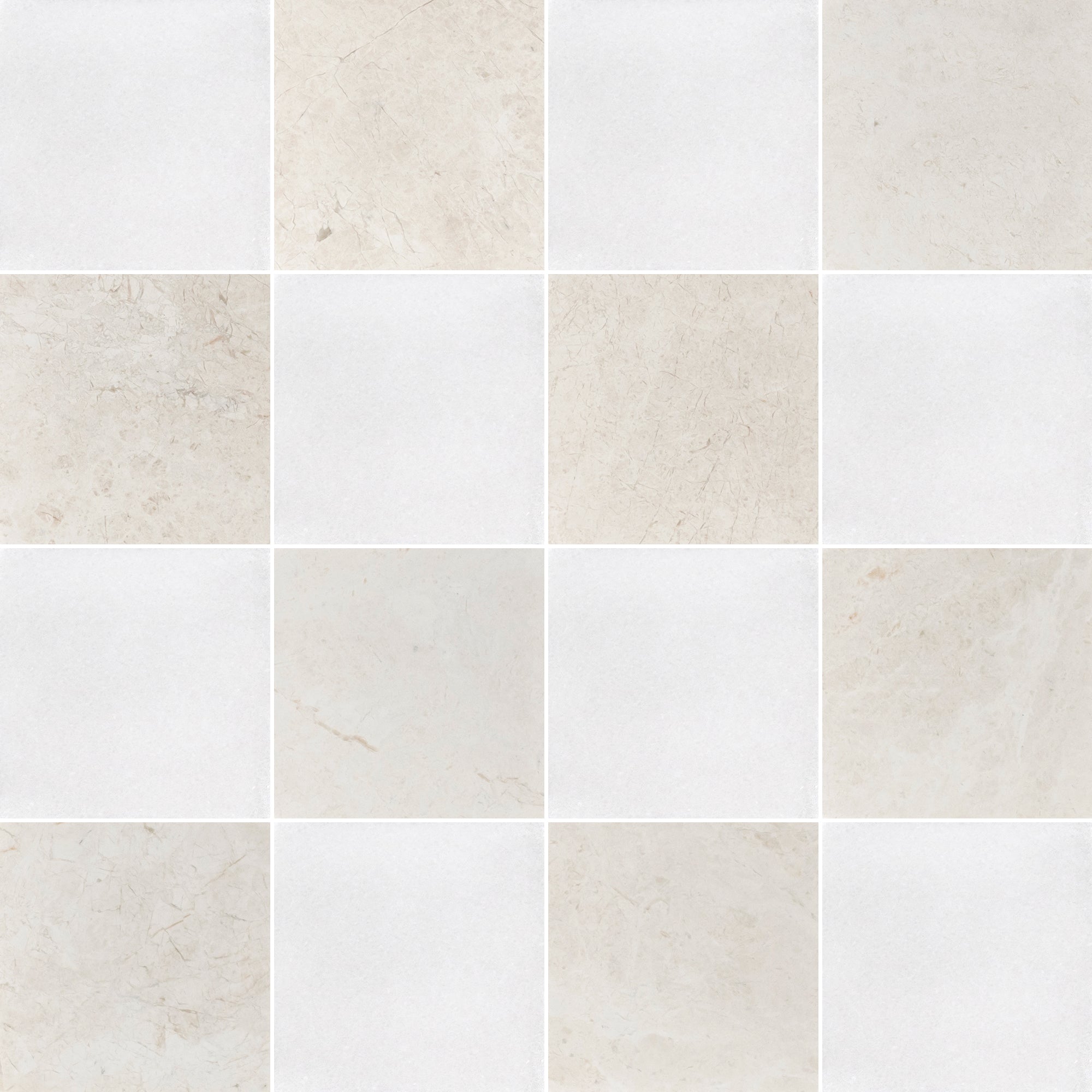 White Thassos & Alba Nova 4" Checkerboard Honed