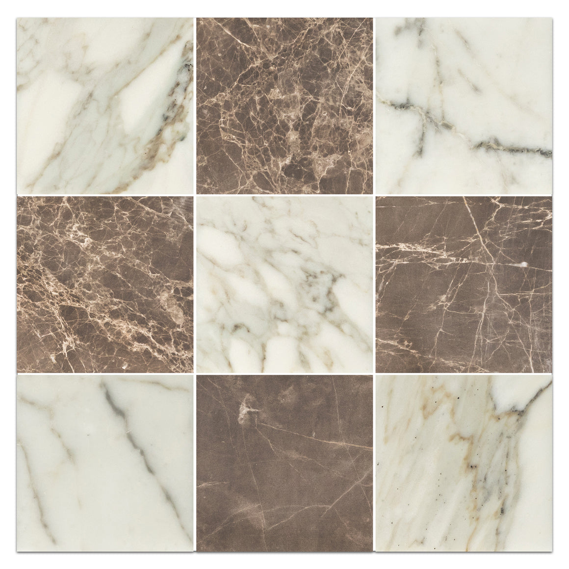 Calacatta Gold & Espresso 4" Checkerboard Honed