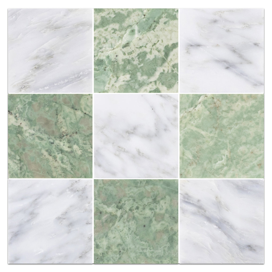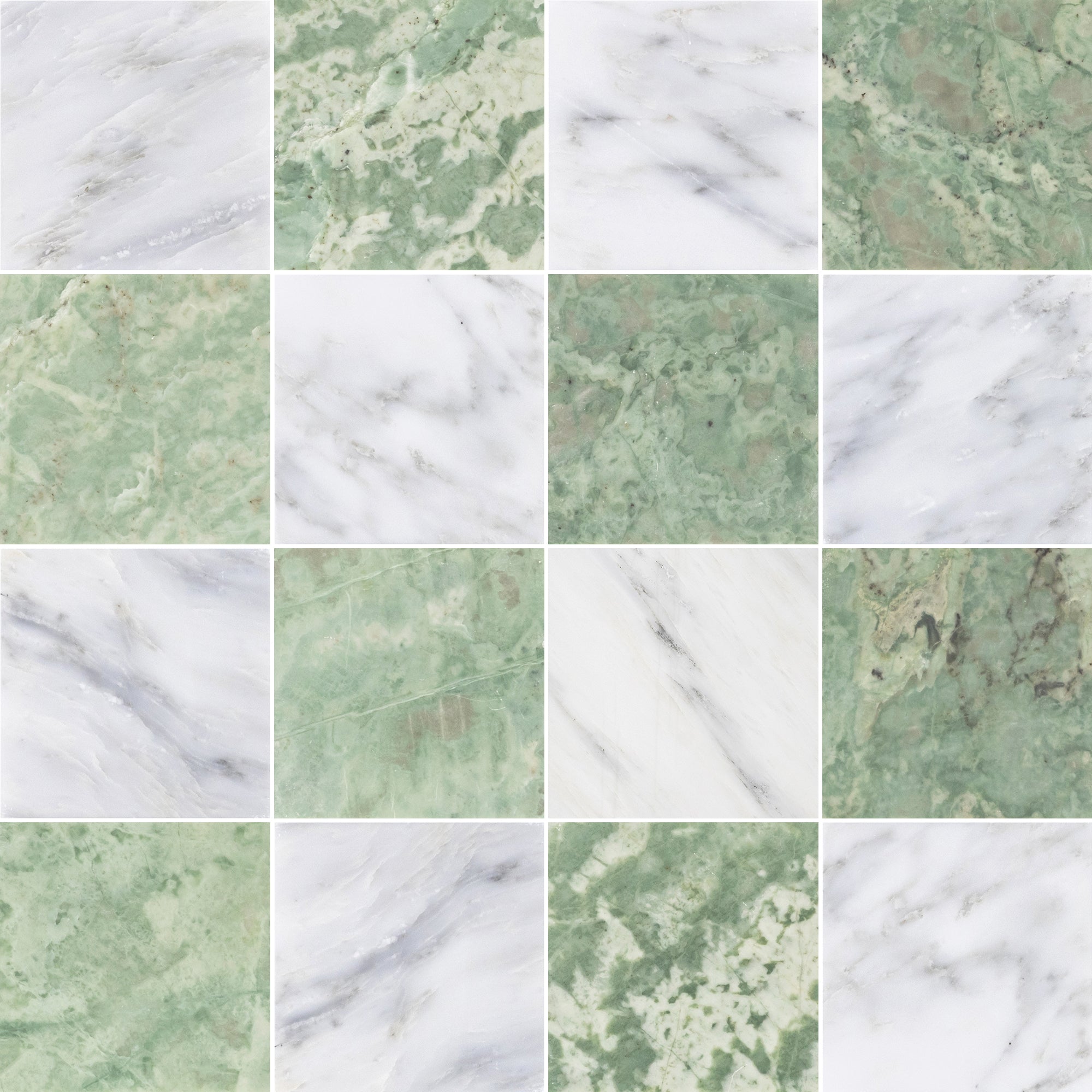 Pearl White & Emerald Green 4" Checkerboard Honed