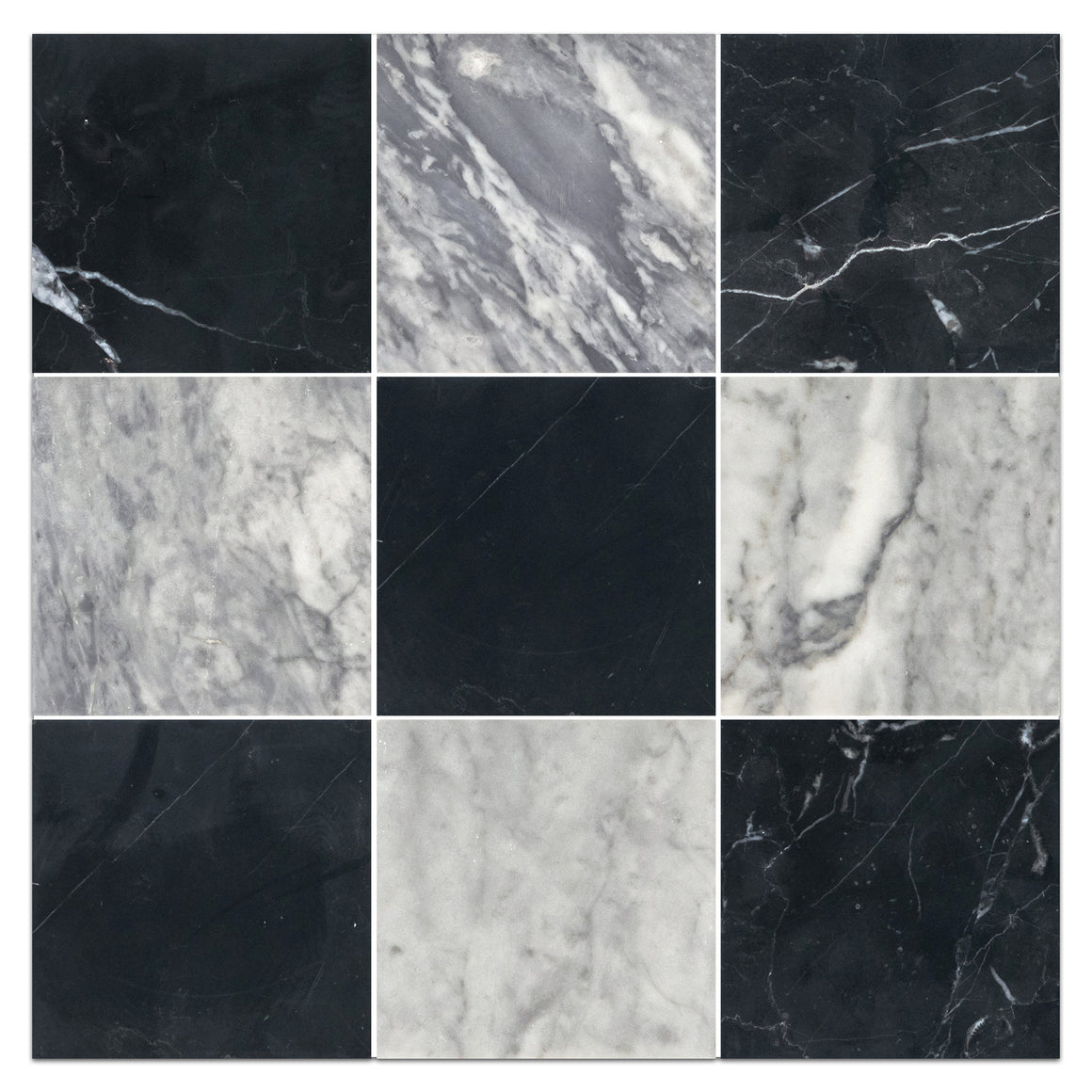 Bardiglio Nuvolato & Black Marble 4" Checkerboard Honed