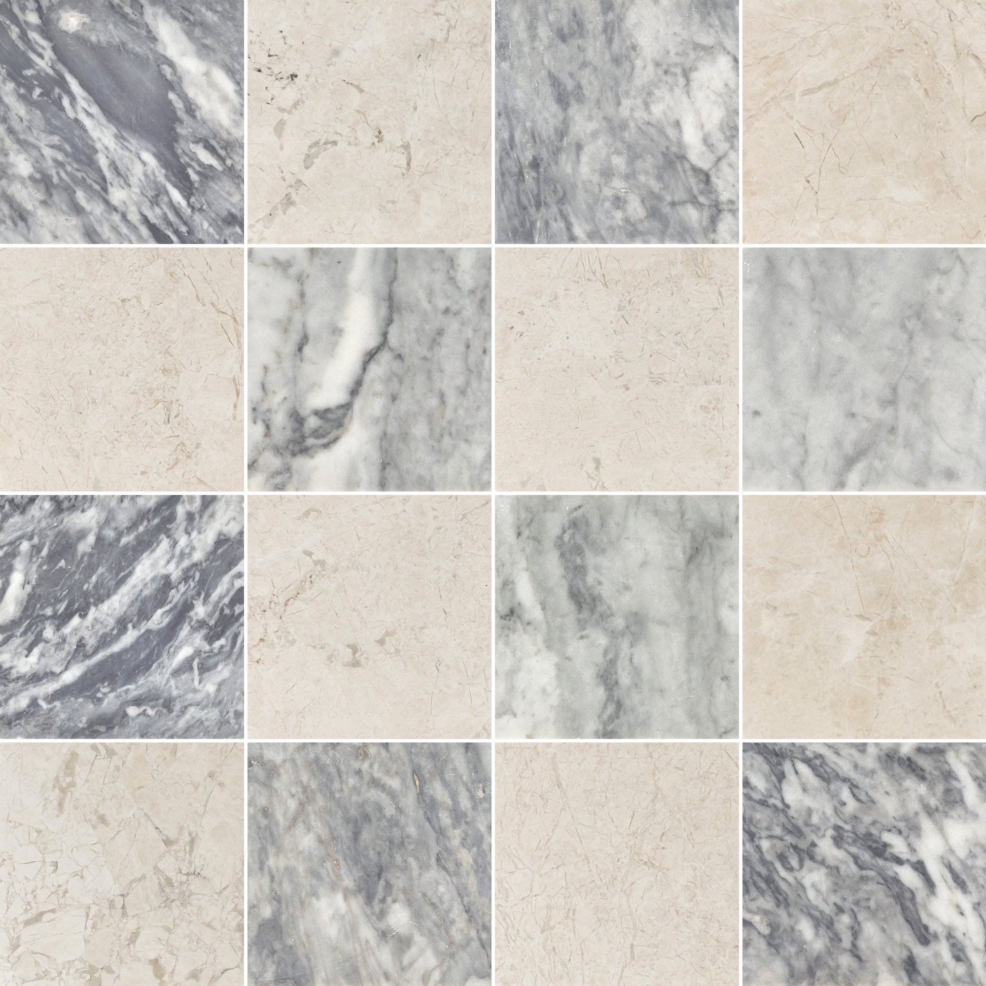 Bardiglio Nuvolato & Vanilla Royale 4" Checkerboard Honed