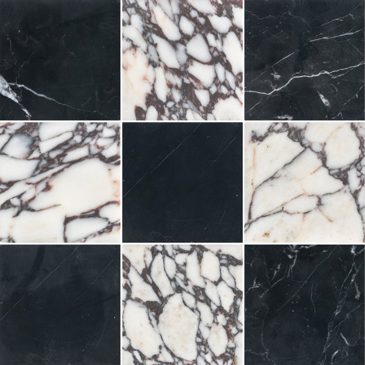 Black Marble & Bianco Violetta 4" Checkerboard Honed