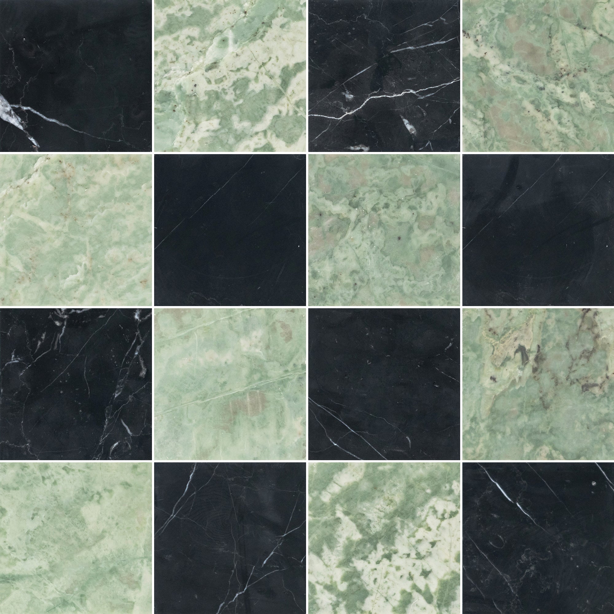 Black Marble & Emerald Green 4" Checkerboard Honed