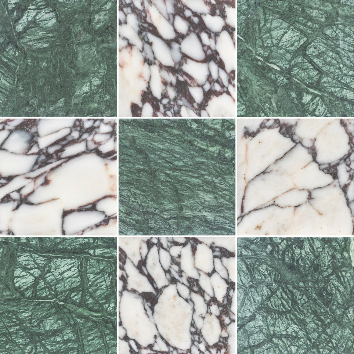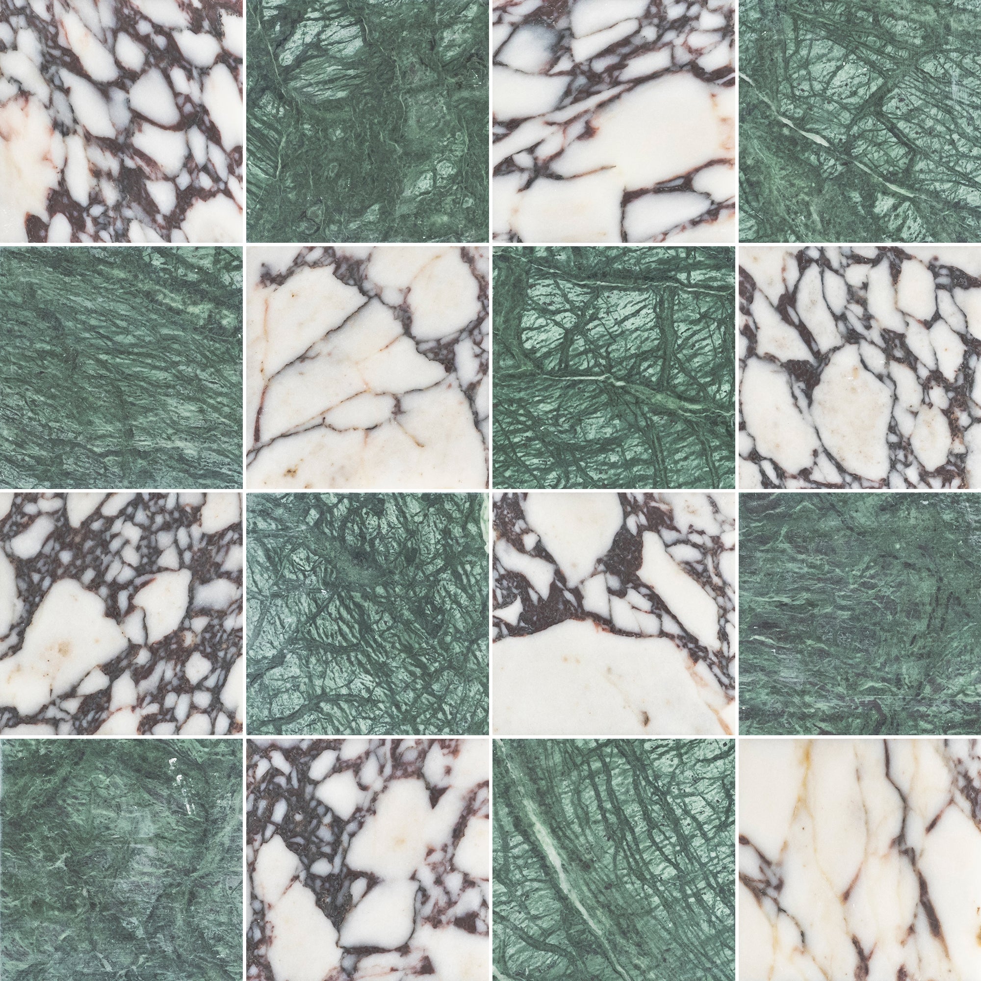 Bianco Violetta & Notte Verde 4" Checkerboard Honed