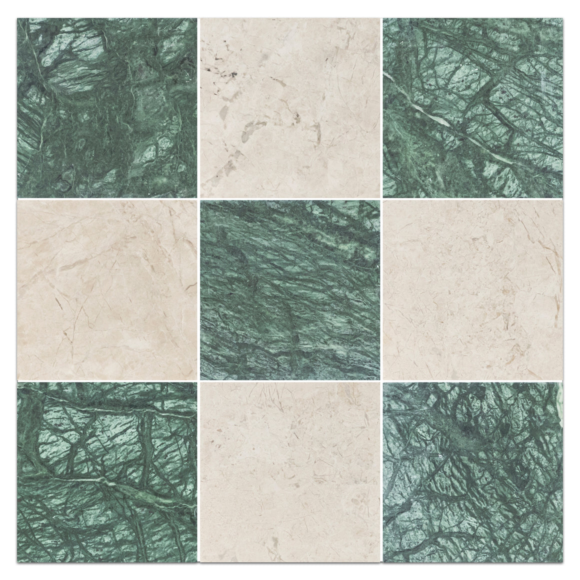 Notte Verde & Vanilla Royale 4" Checkerboard Honed
