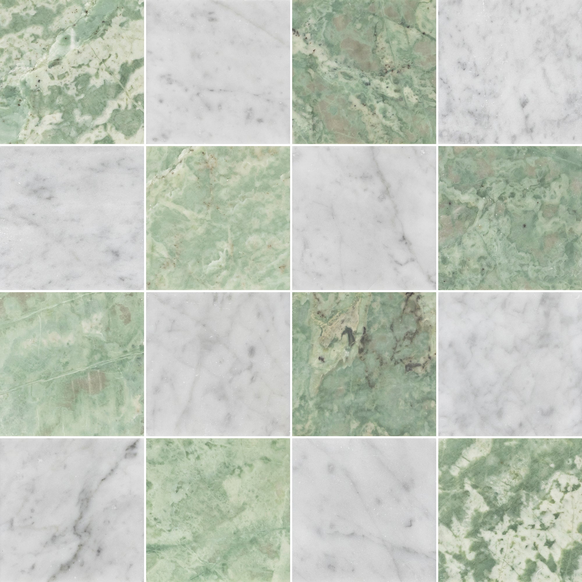 Emerald Green & Bianco Carrara 4" Checkerboard Honed