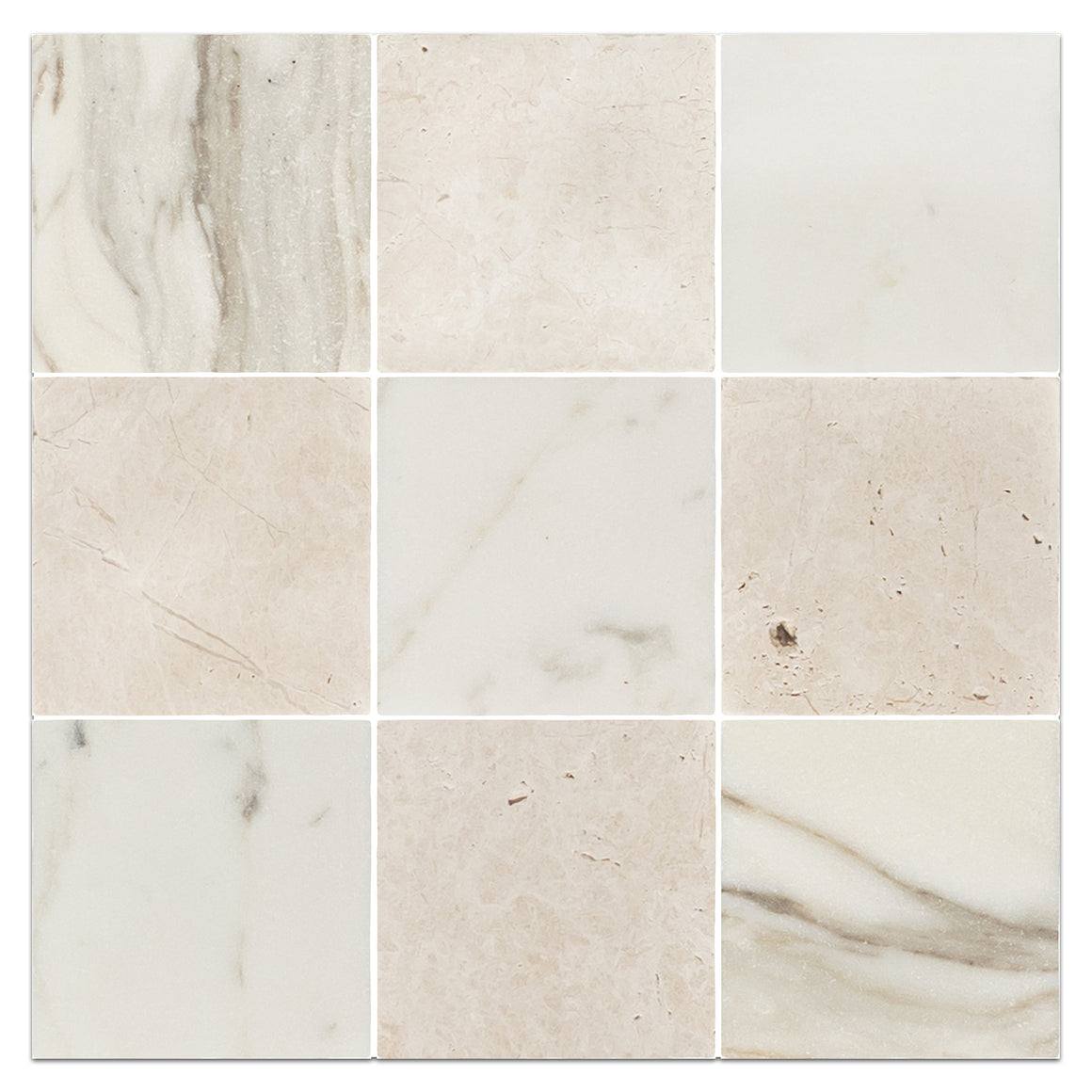 Calacatta Gold & Alba Nova 4" Checkerboard Tumbled