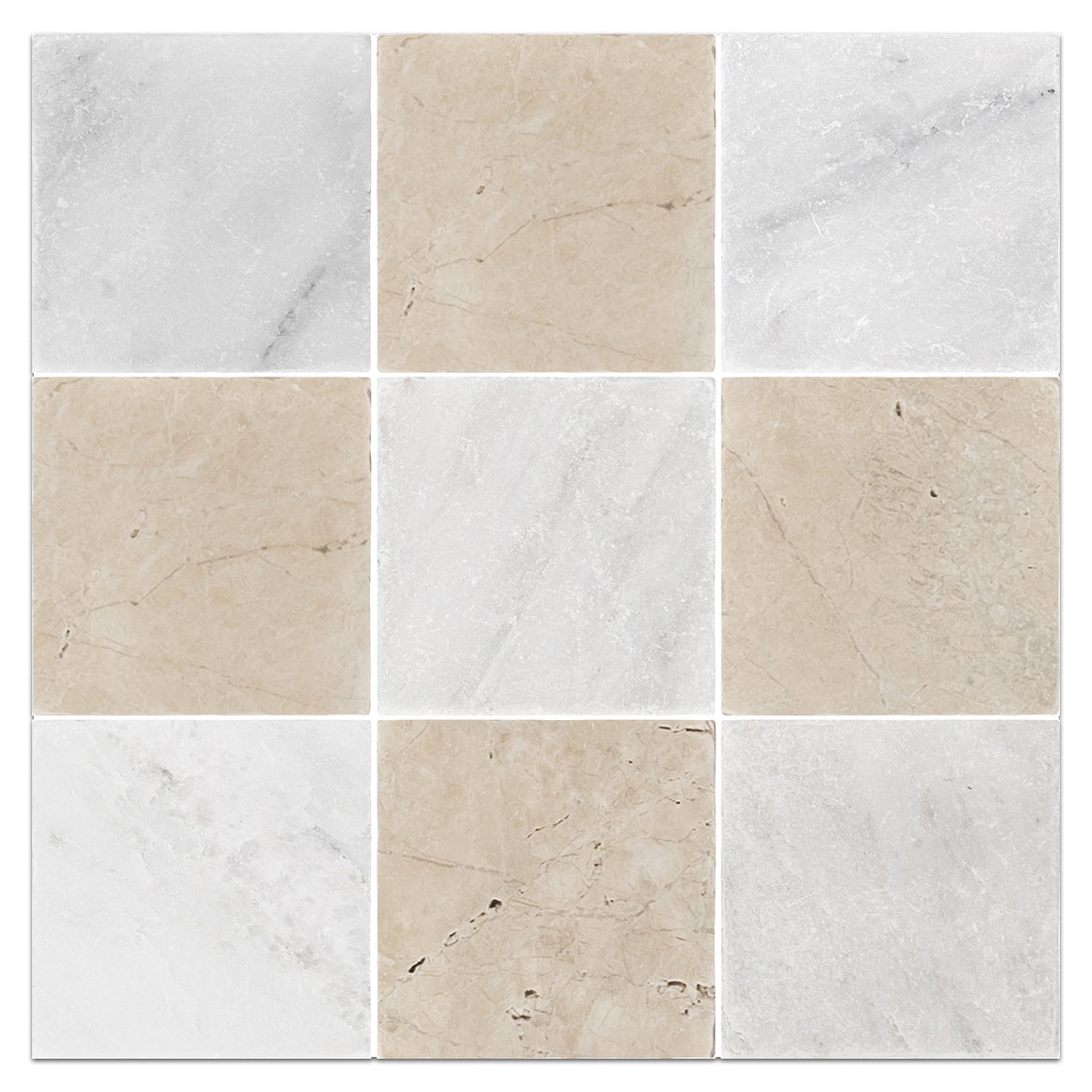 Pearl White & Vanilla Royale 4" Checkerboard Tumbled