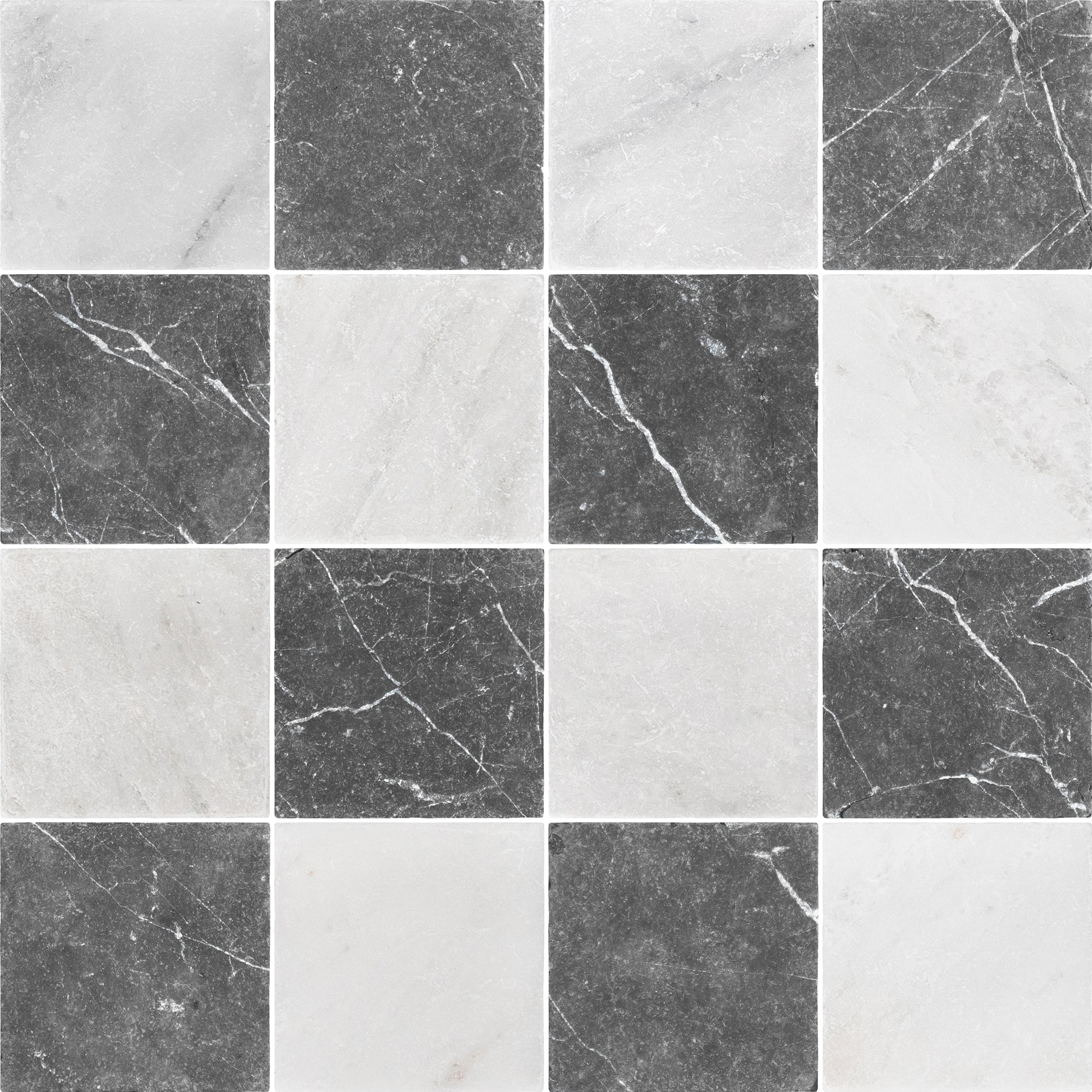 Pearl White & Black Marble 4" Checkerboard Tumbled