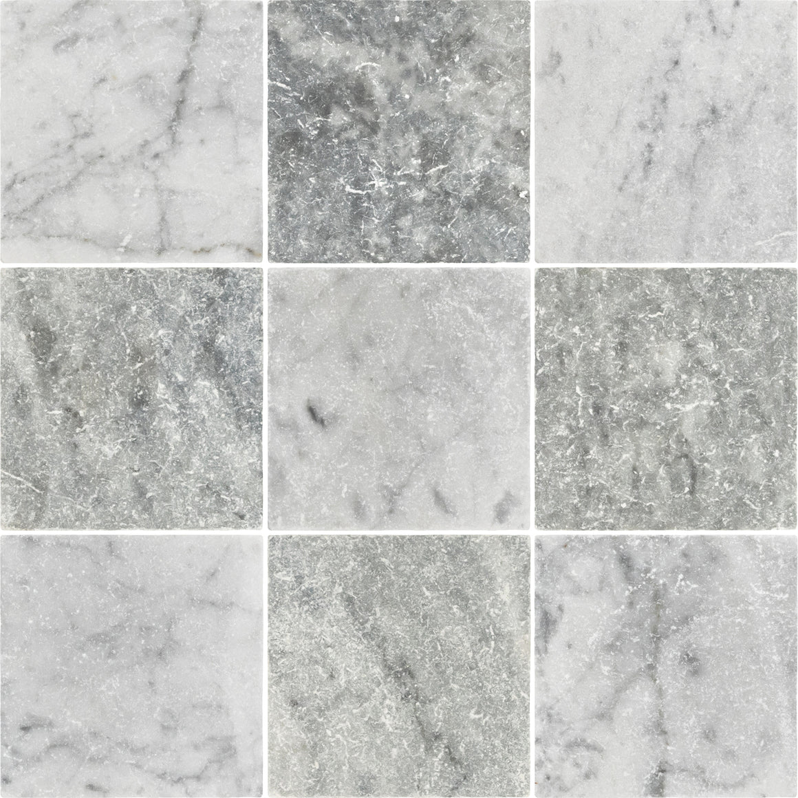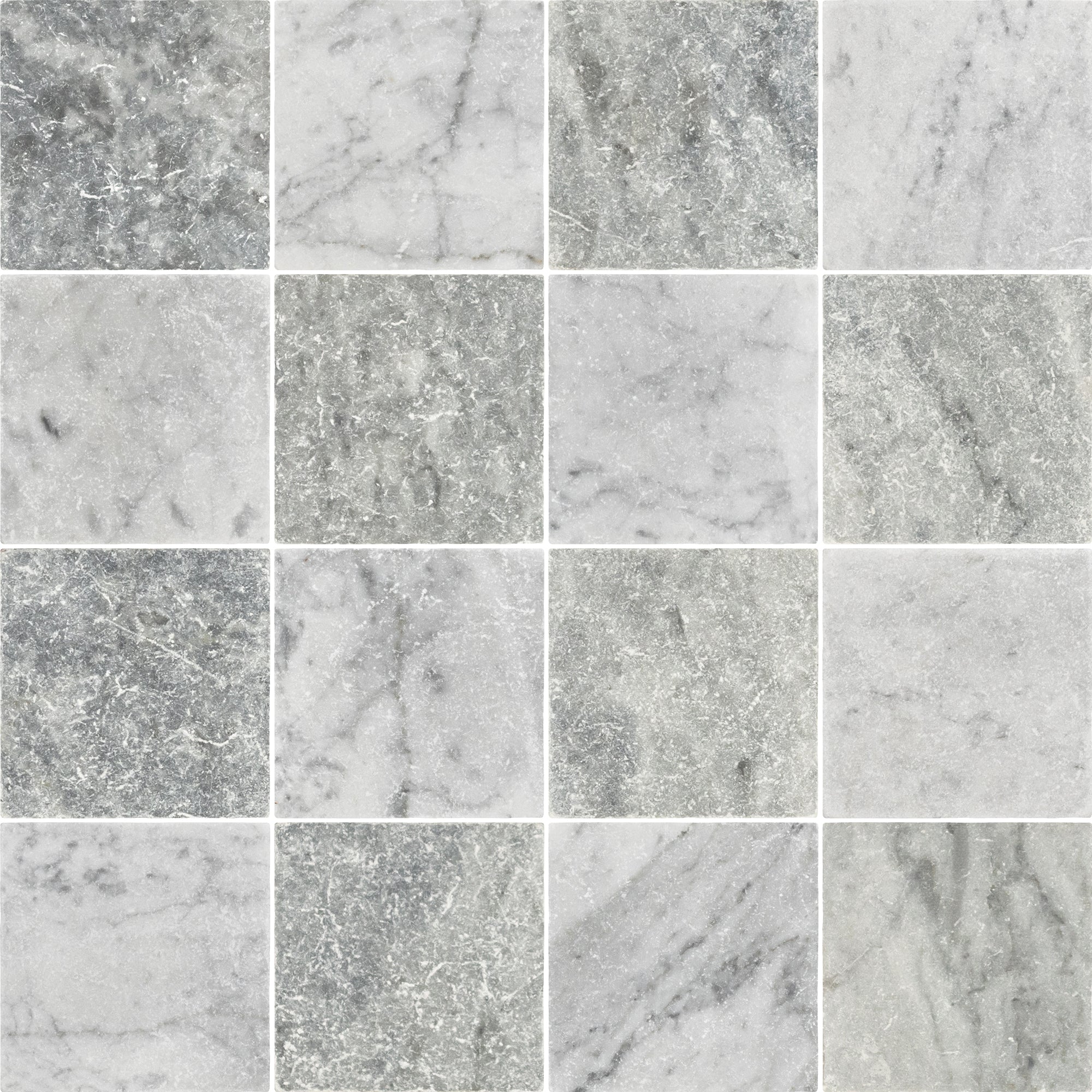 Bardiglio Nuvolato & Bianco Carrara 4" Checkerboard Tumbled
