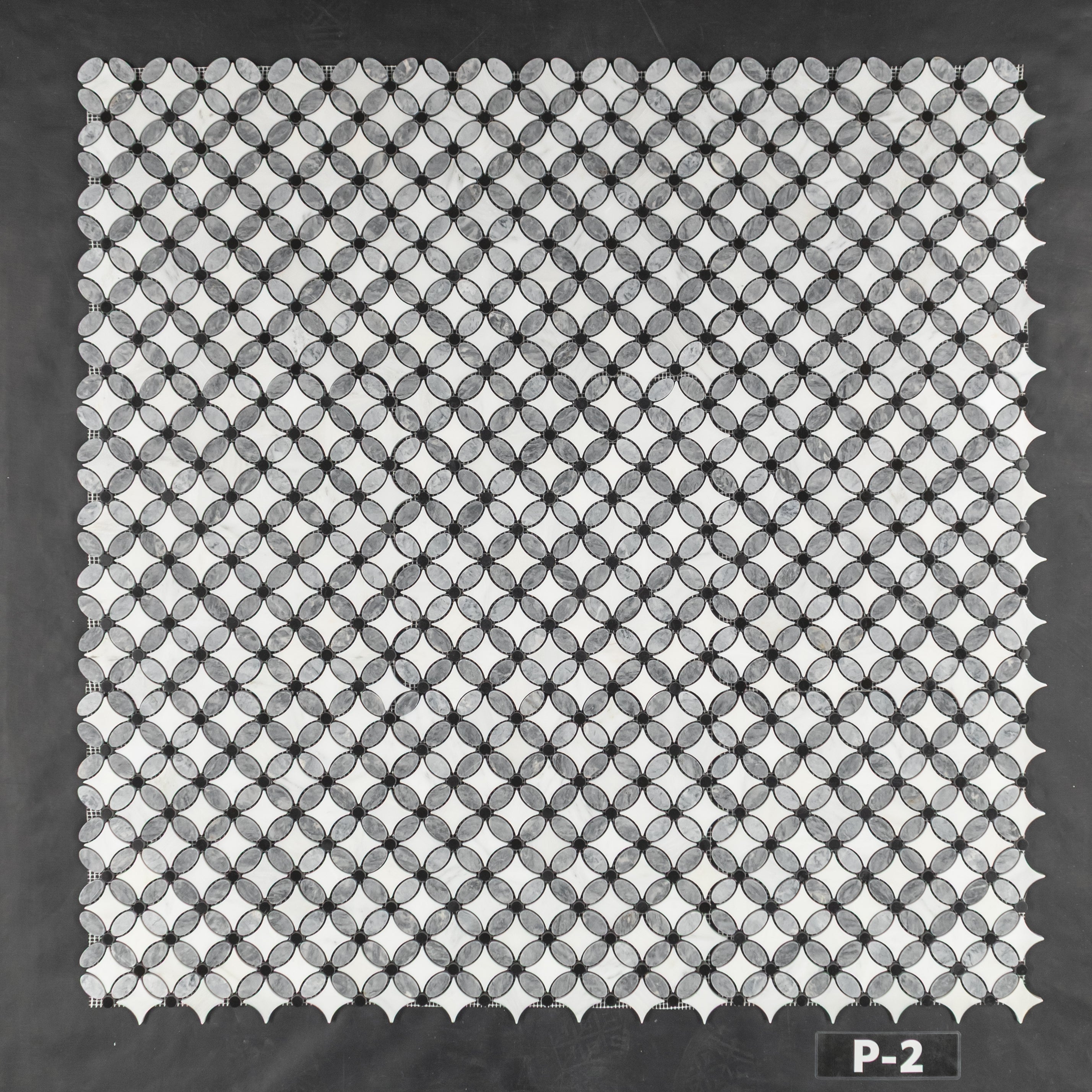 Flor gris pacífico con mosaico de puntos blanco perla y negro pulido