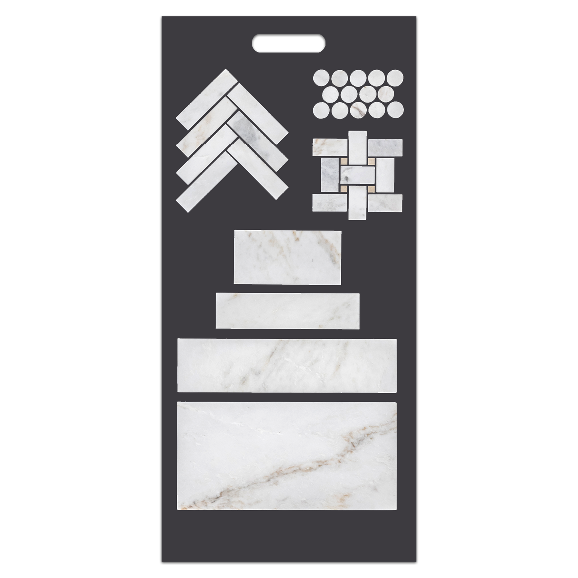 Bianco Oro Mosaico en espiga de 1" x 4" pulido