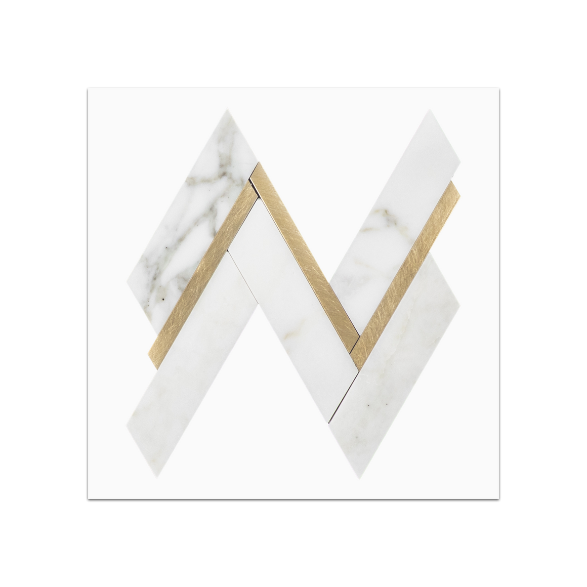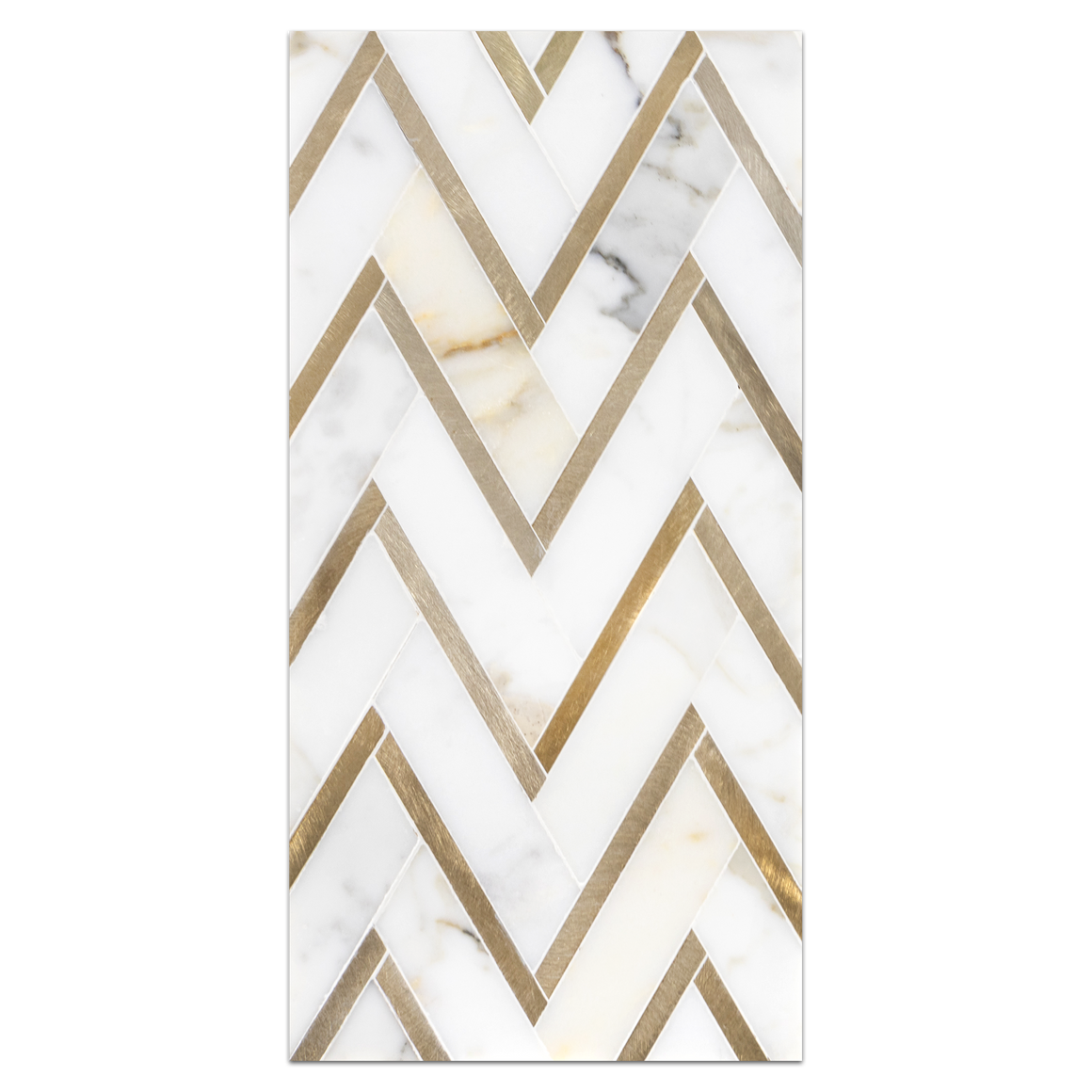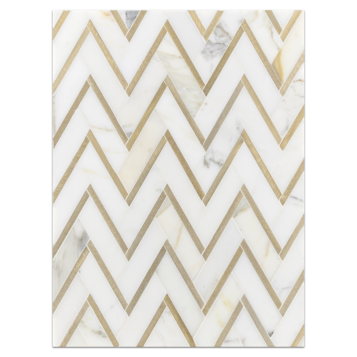 Calacatta Espiga Dorada con Mosaico de Aluminio Dorado Pulido