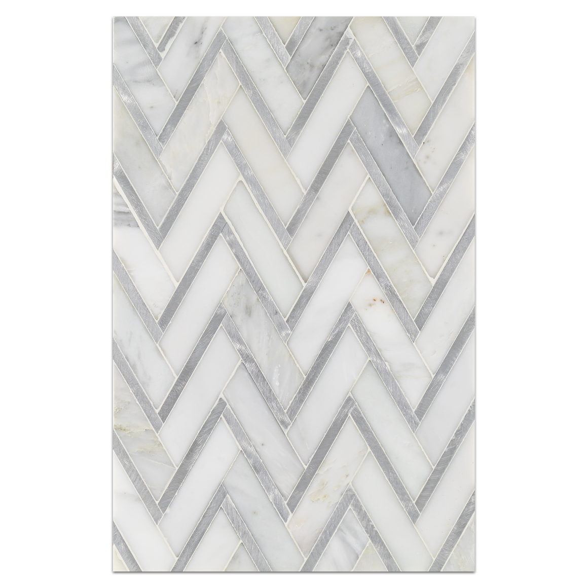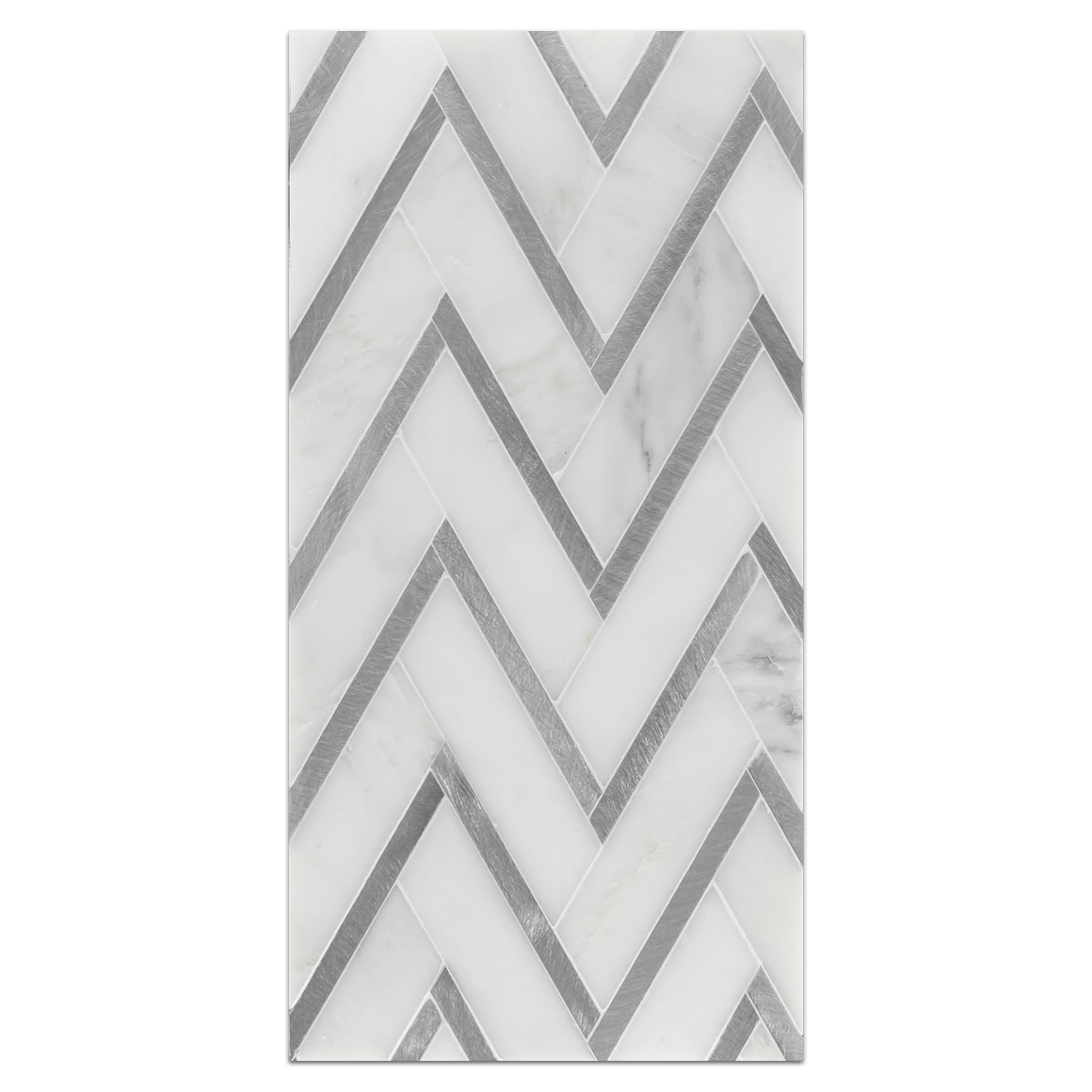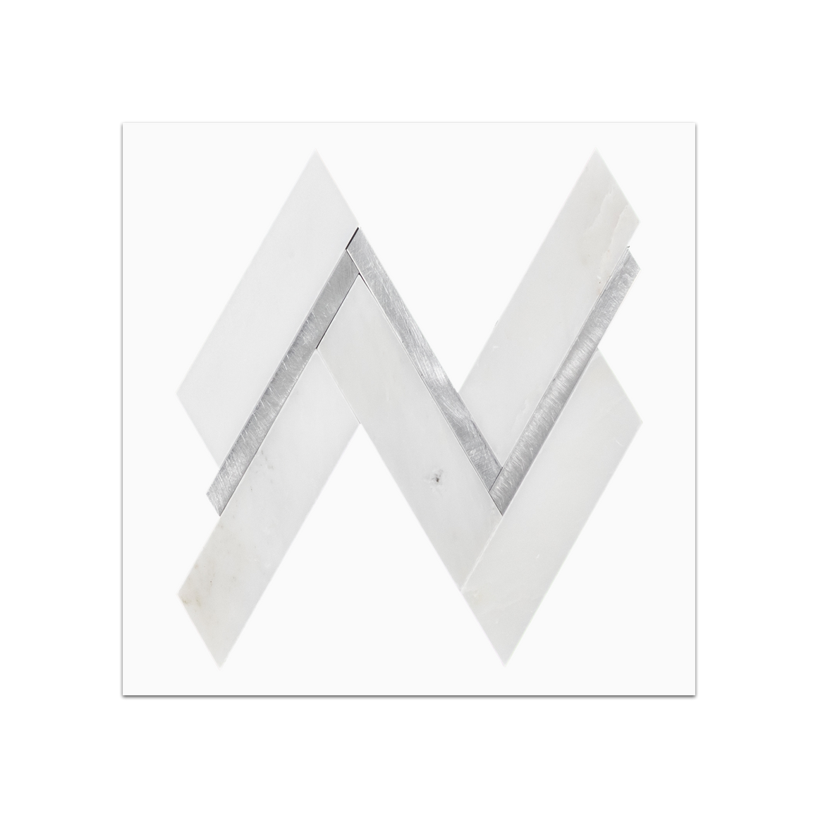 Espiga blanca perla con mosaico de aluminio plateado pulido