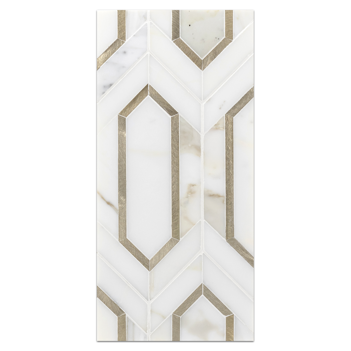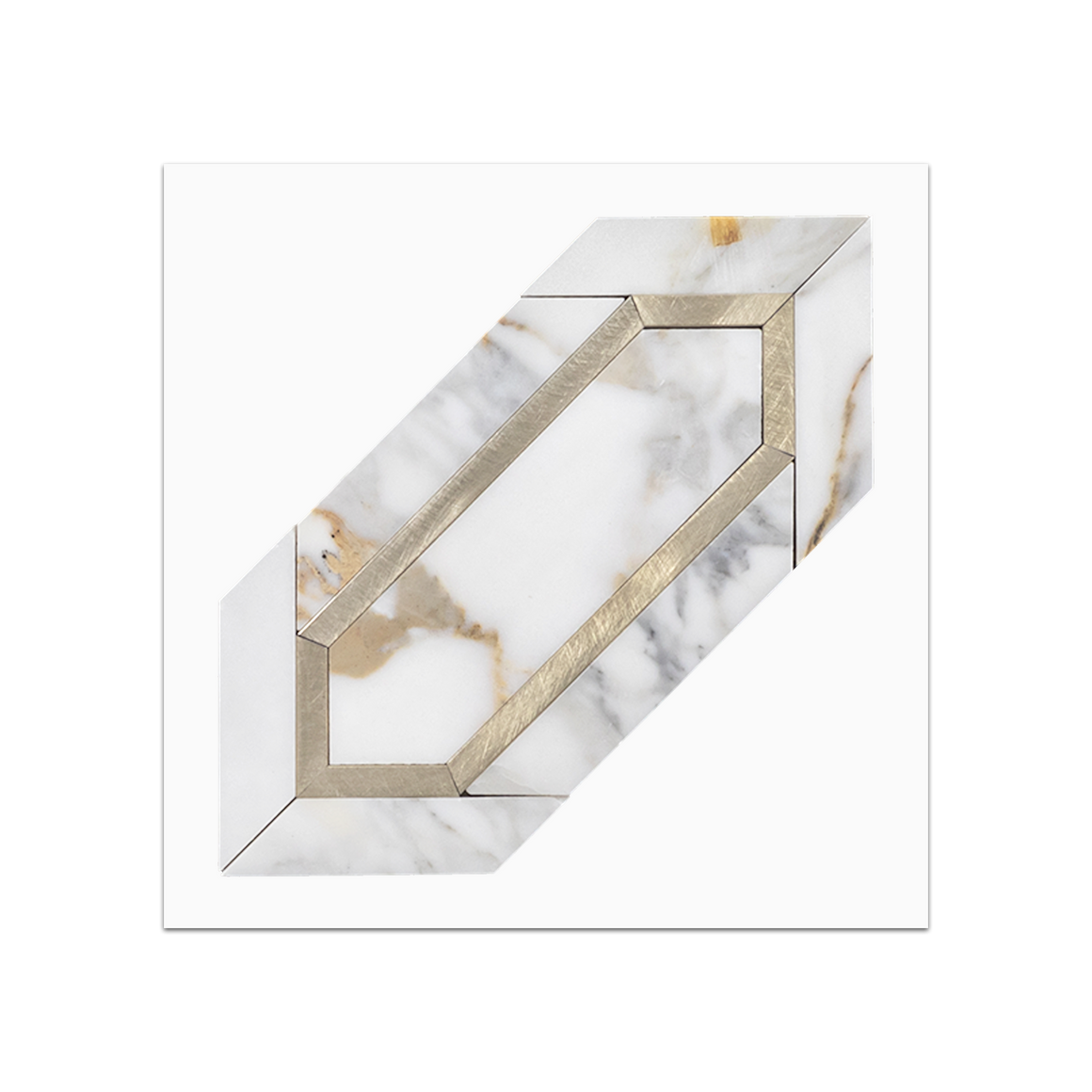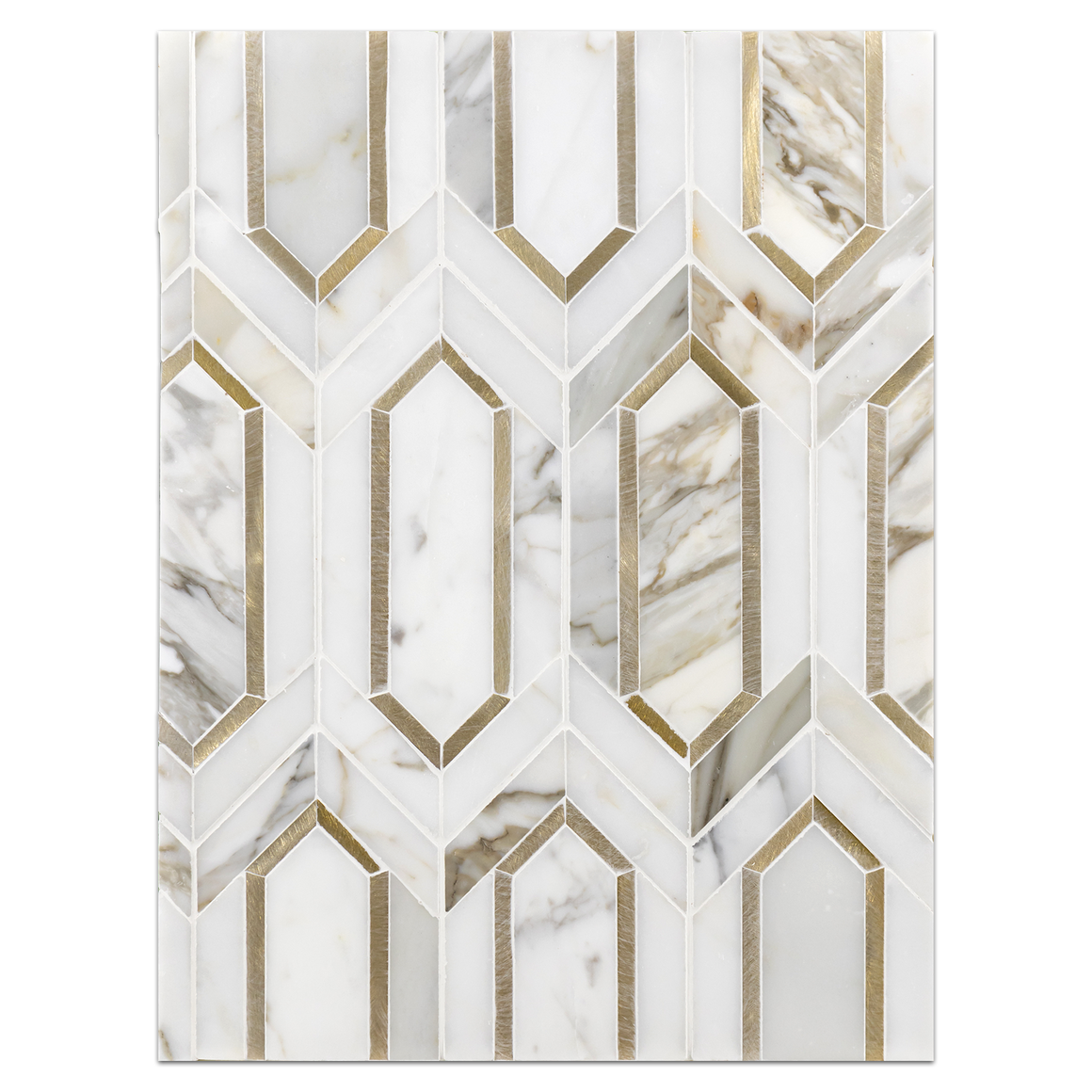 Calacatta Gold con mosaico de piquete de aluminio dorado pulido