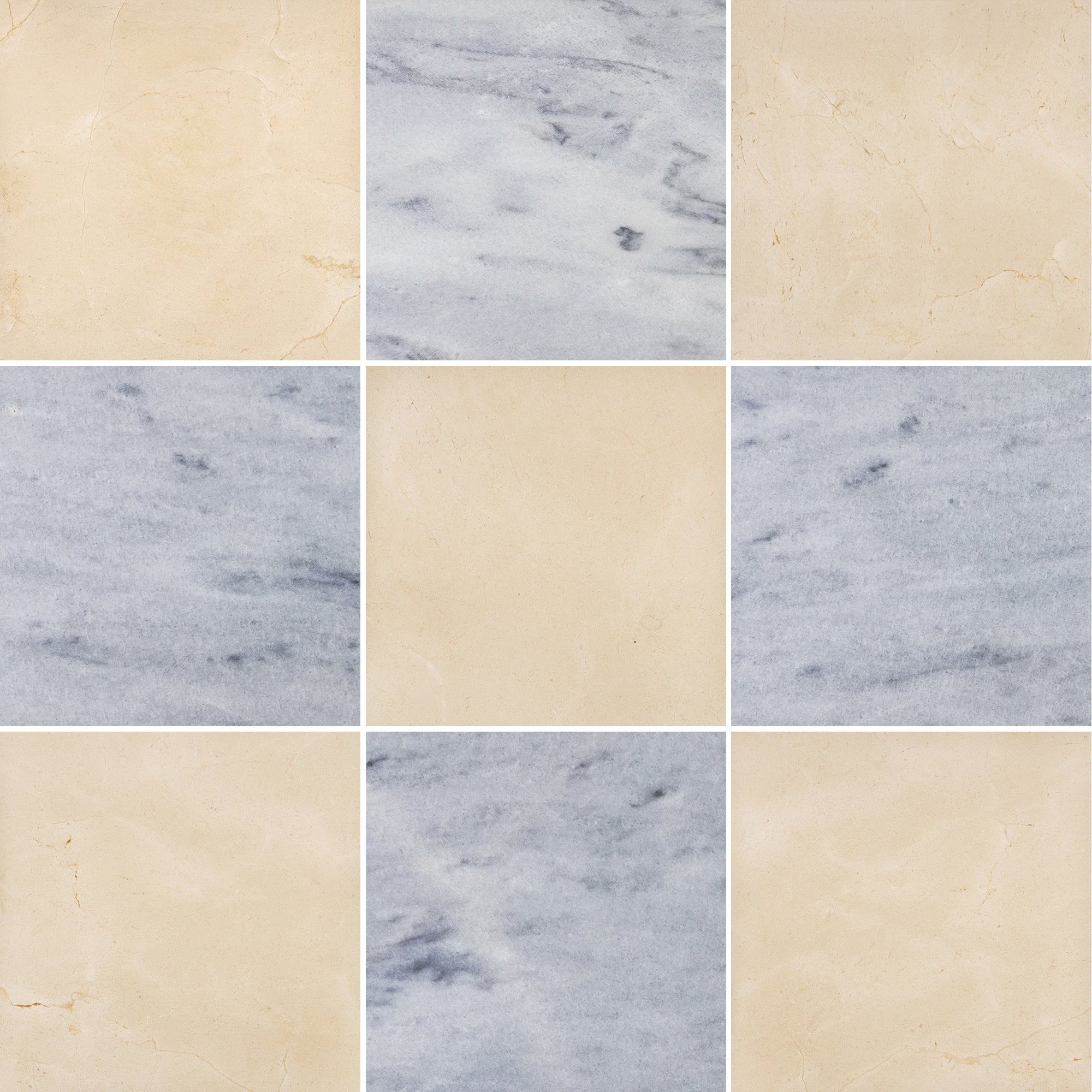 Crema Marfil & Blue Mist 12" Checkerboard Honed