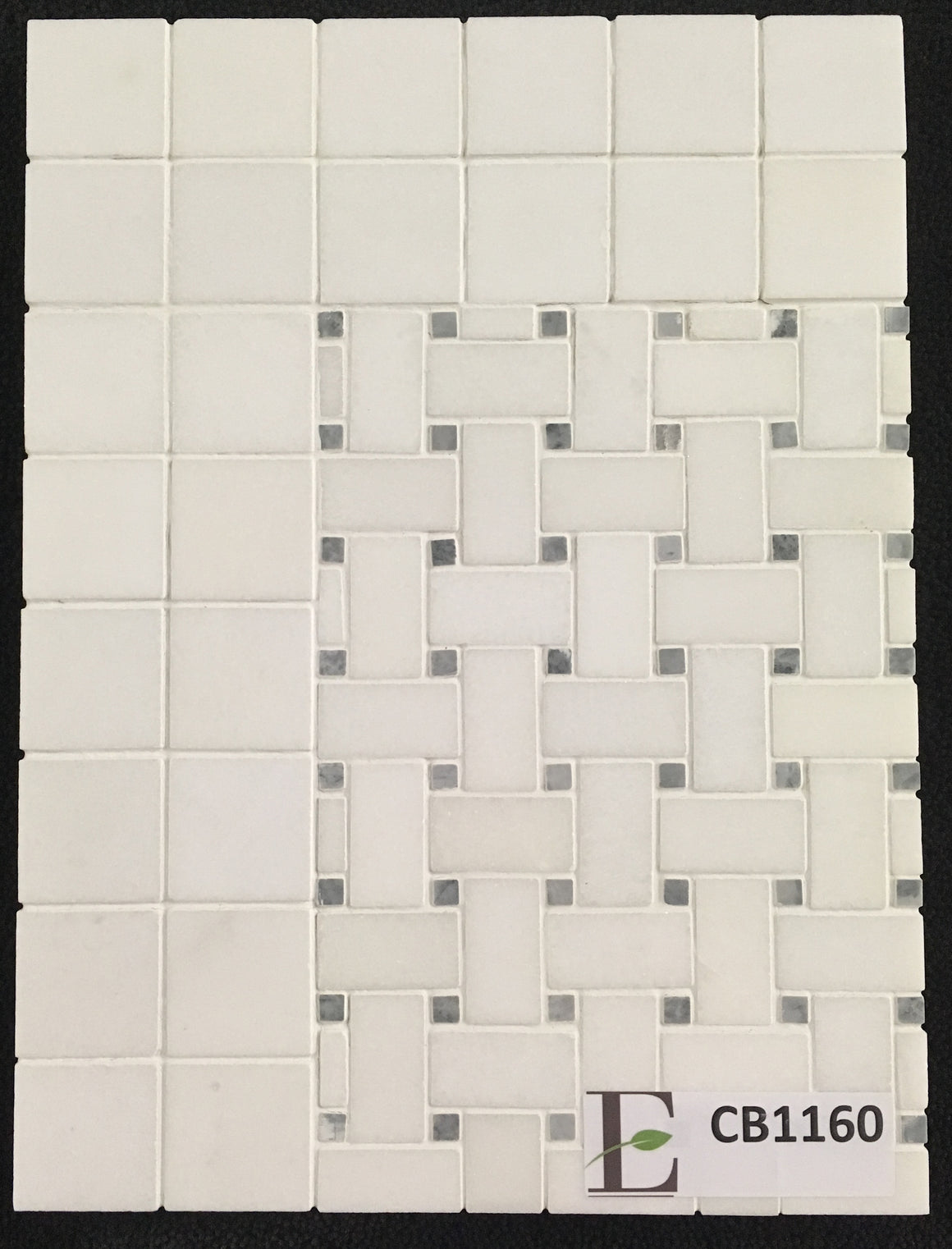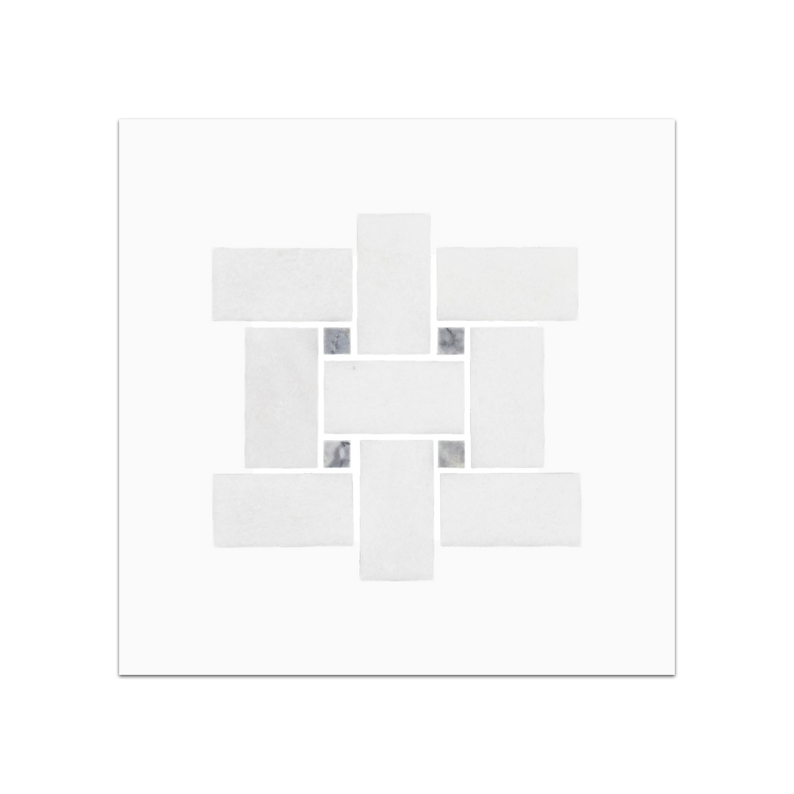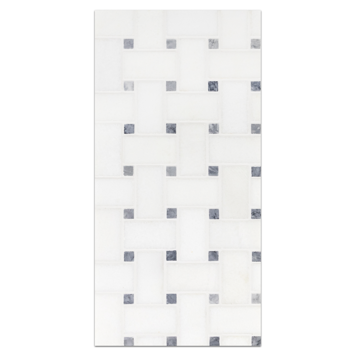 Tejido de cesta Thassos blanco con mosaico de puntos gris pacífico de 3/8" pulido