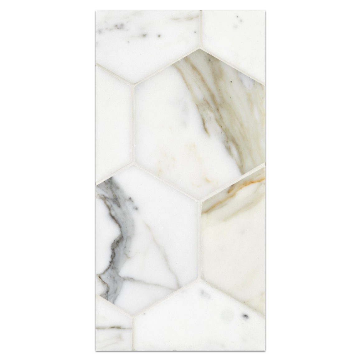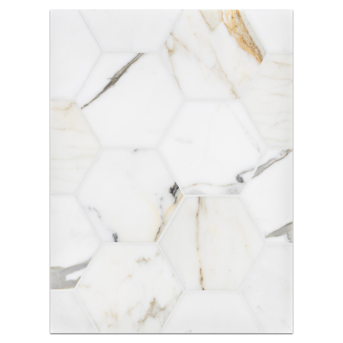 Mosaico hexagonal Calacatta Gold de 5" pulido