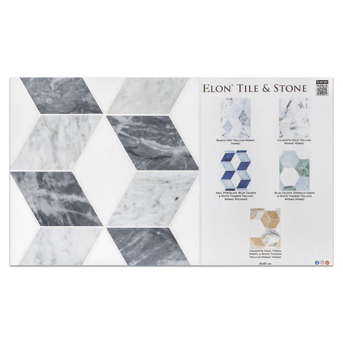 Bardiglio Nuvolato con mosaico Thassos Trillium blanco perla y blanco pulido