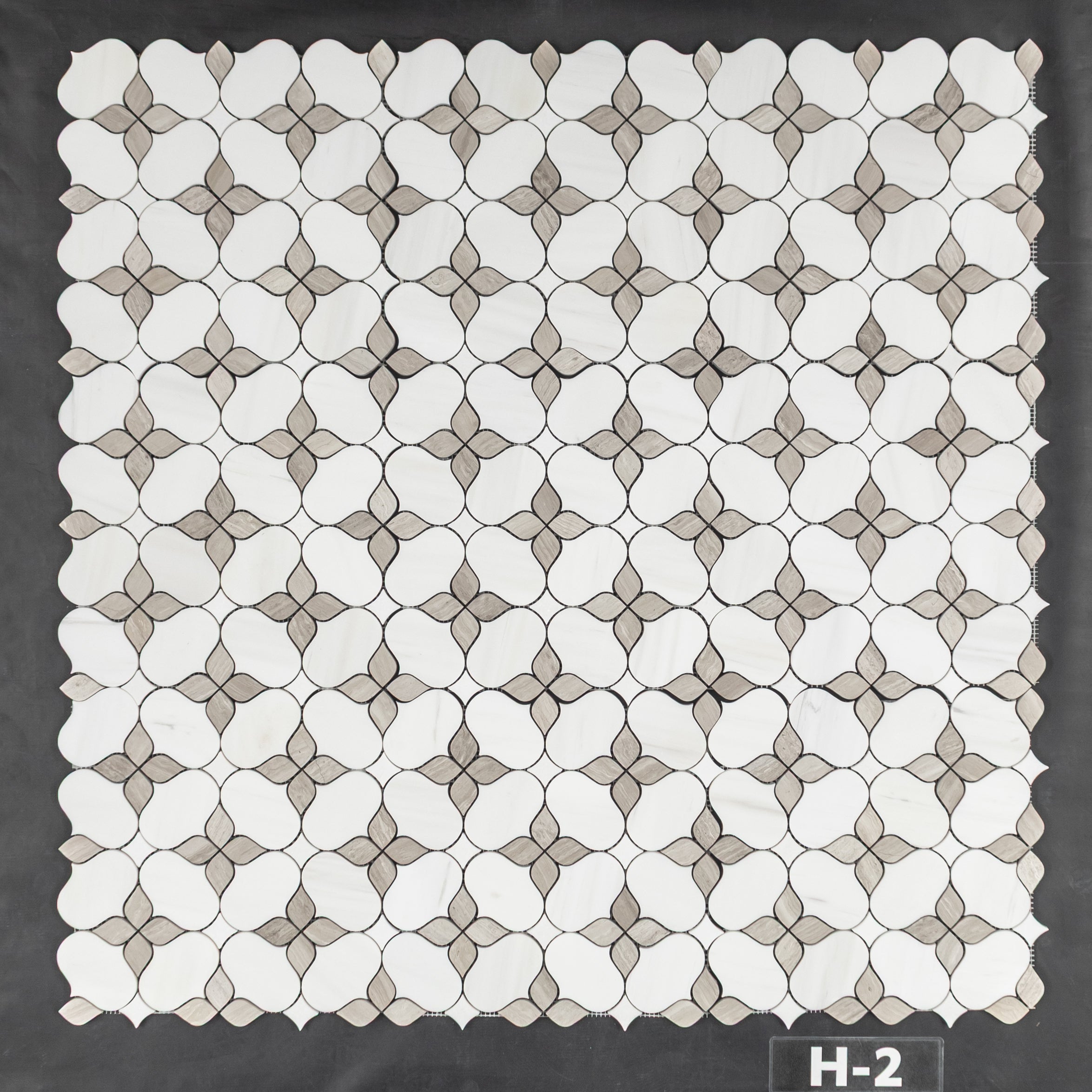Silueta de dolomita con mosaico de madera de playa y Thassos blanco pulido