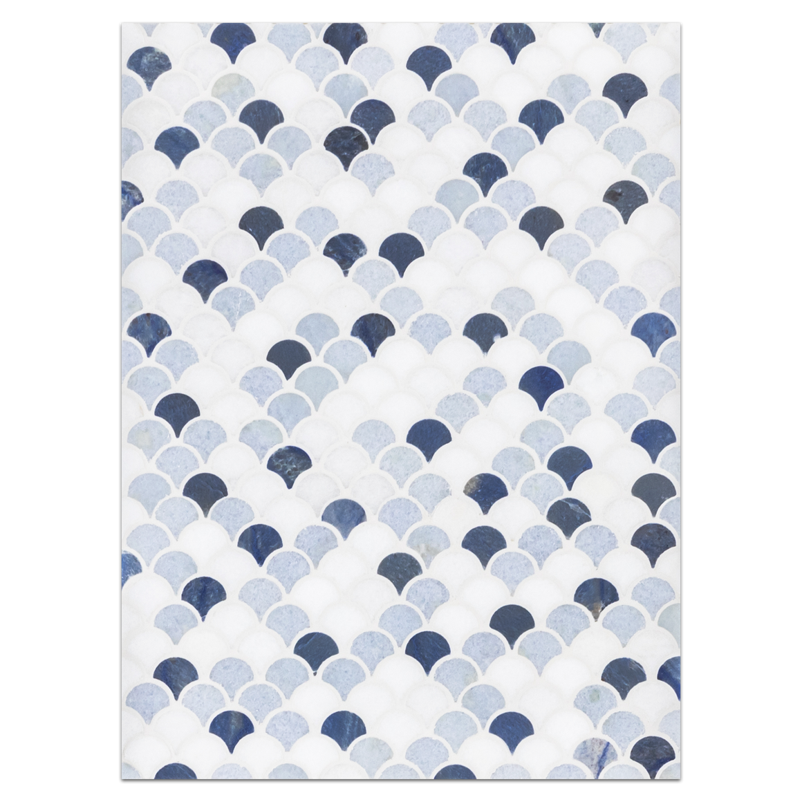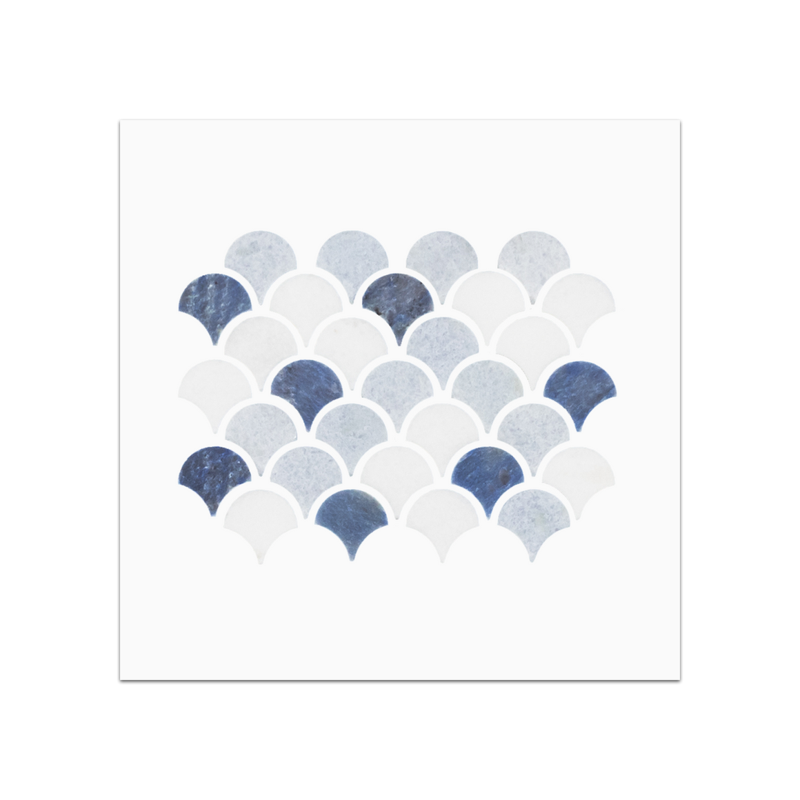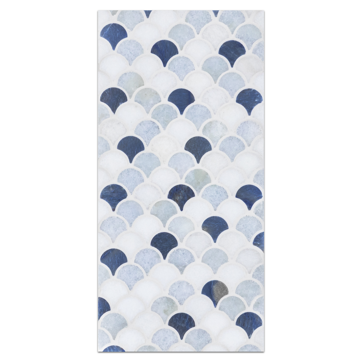 Abanico Tri-Blend (Azul Celeste, Azul Macauba y White Thassos) Mosaico Pulido