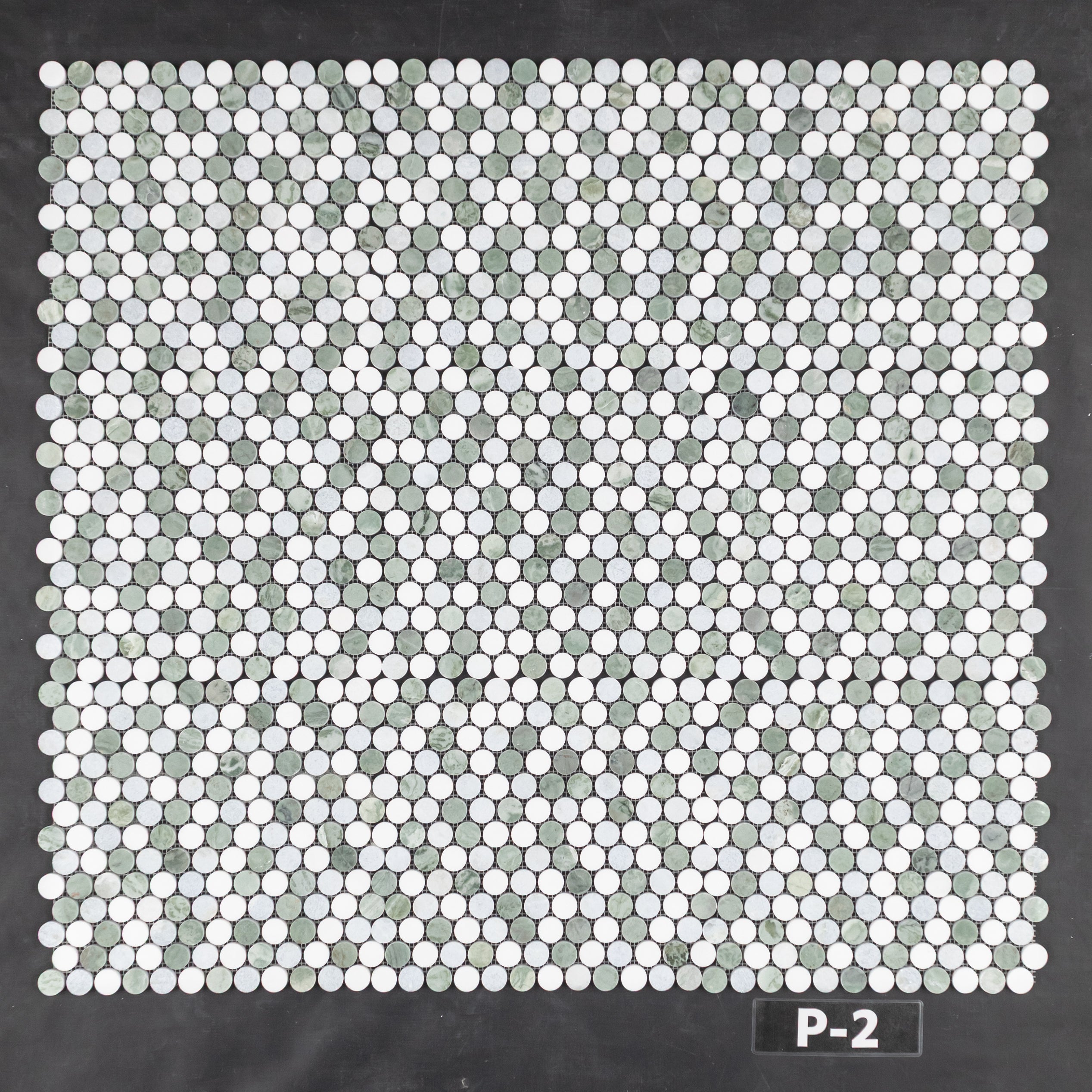 Tri-Blend (verde Ming/Blanco Thassos/Azul Celeste) Mosaico redondo de 1" pulido