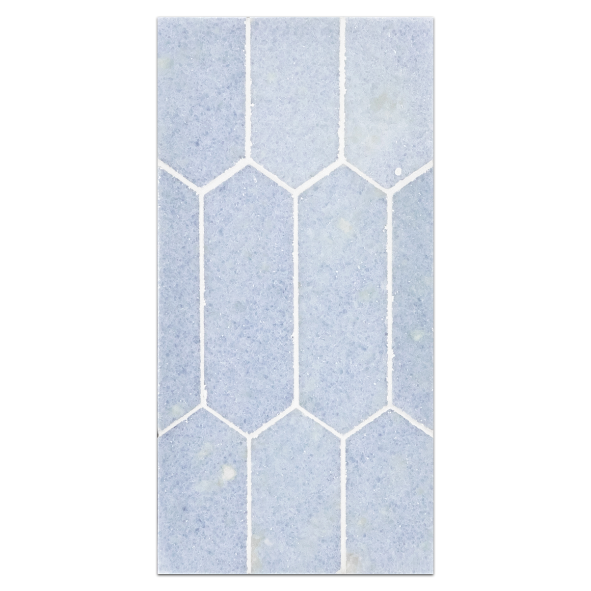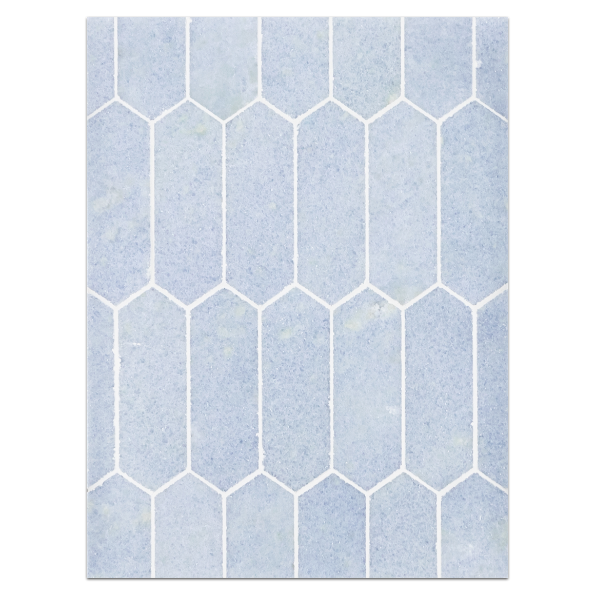 Mosaico de piquete azul celeste de 2" x 6" pulido