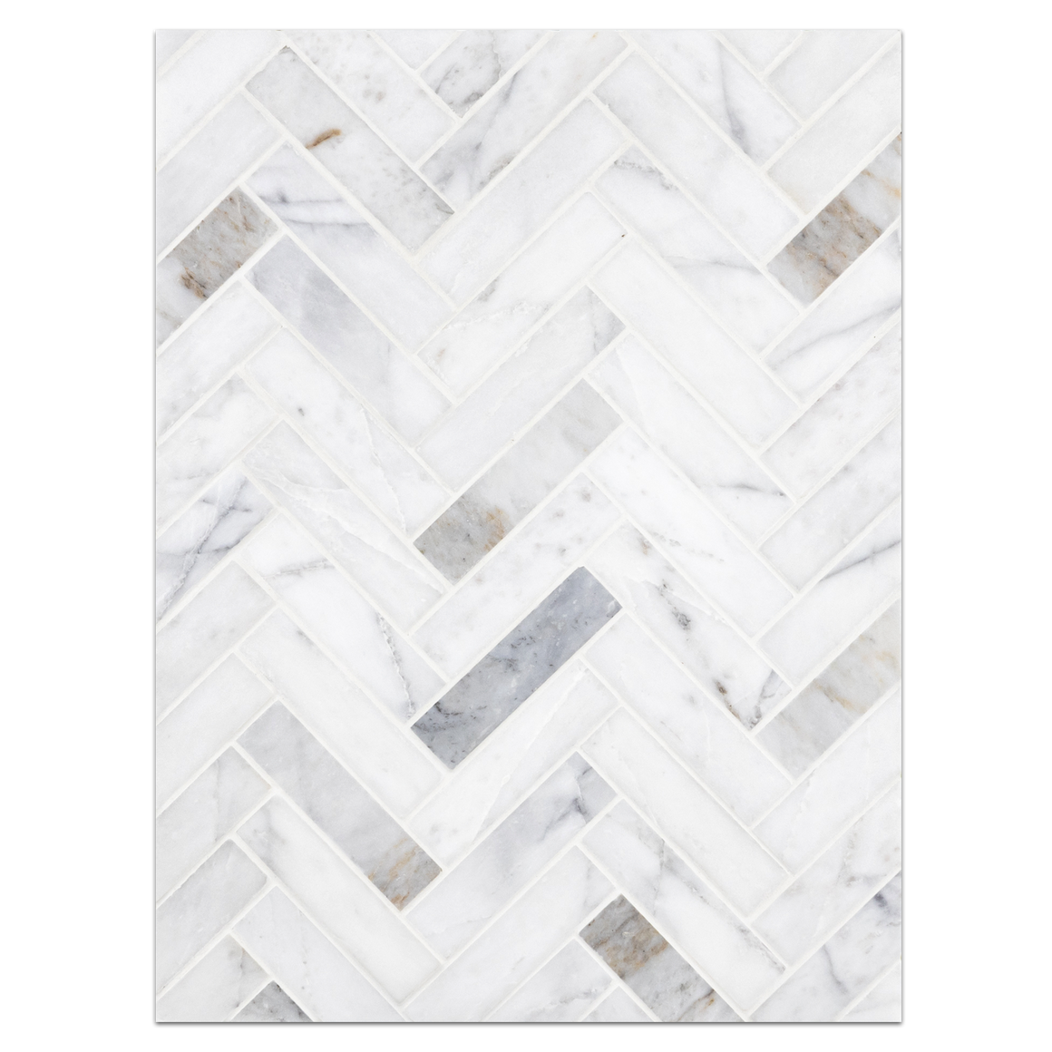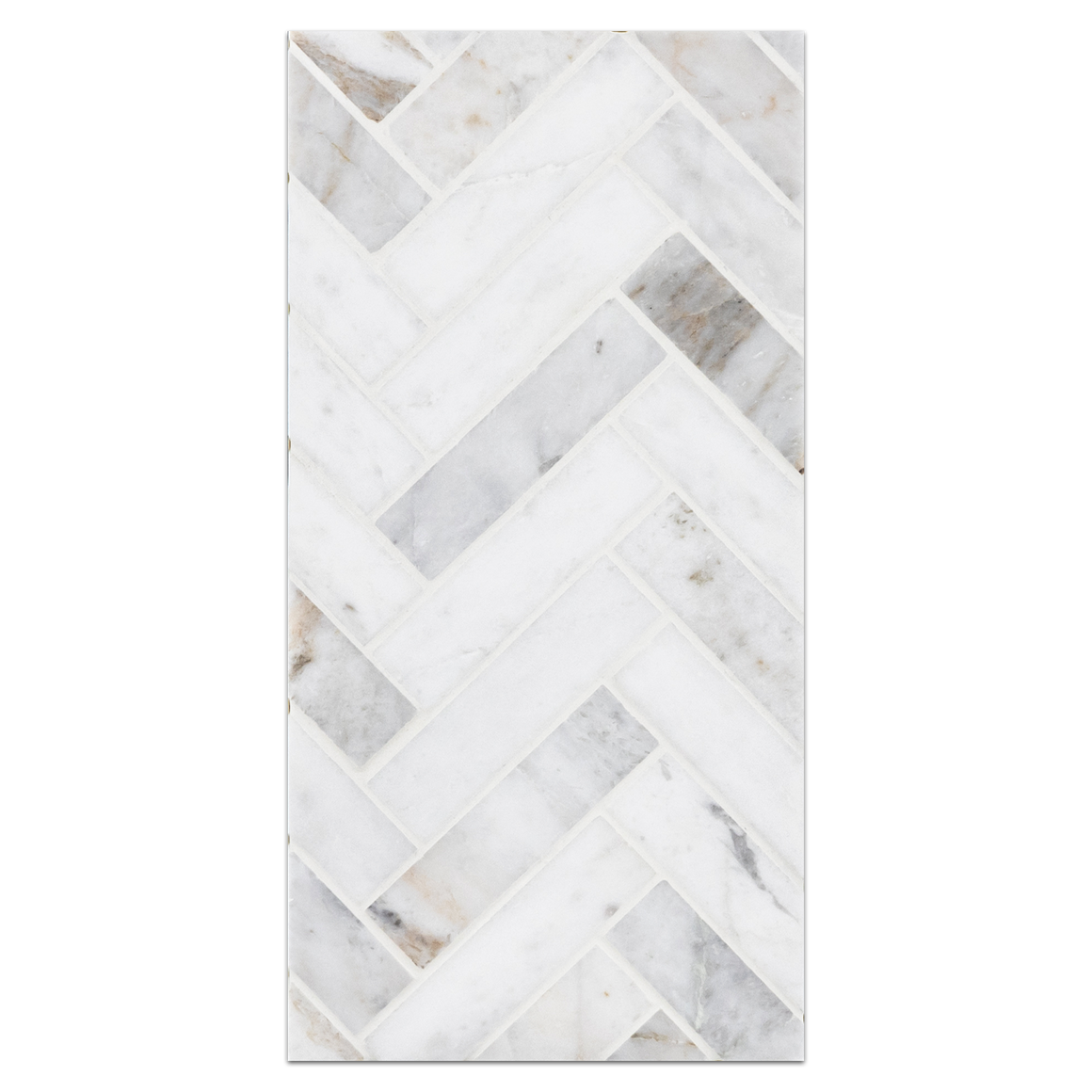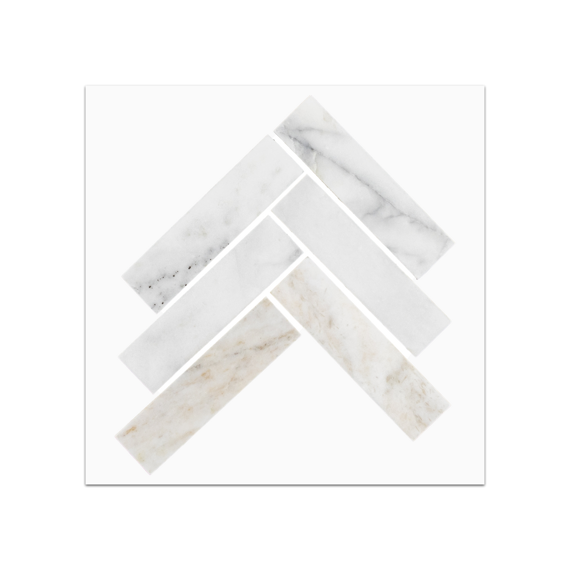 Bianco Oro Mosaico en espiga de 1" x 4" pulido