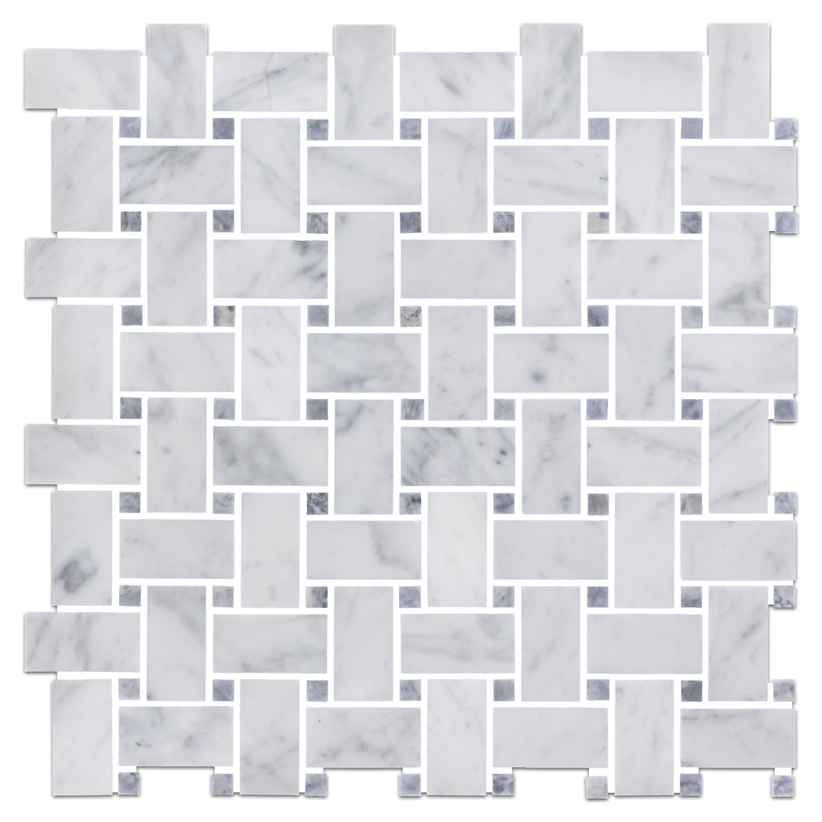 AM8295H - Tejido de cesta Bianco Carrara con mosaico de puntos gris Pacífico de 3/8" pulido