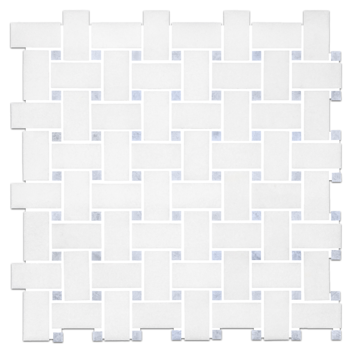 AM9045P - Tejido de cesta Thassos blanco con mosaico de puntos azul celeste pulido