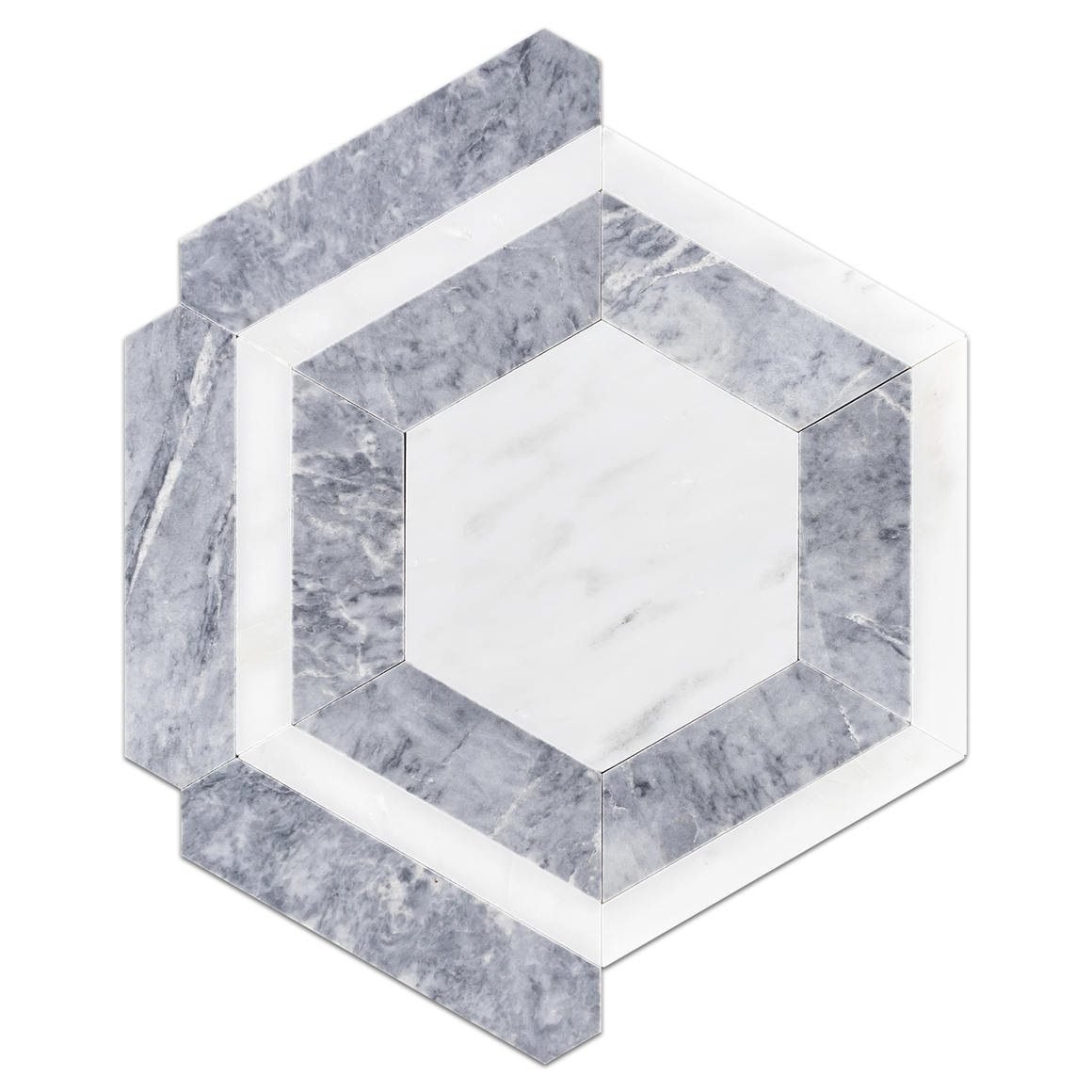 CC104 - Panal Blanco Perla con Tarjeta Pulida de Mosaico Gris Pacífico