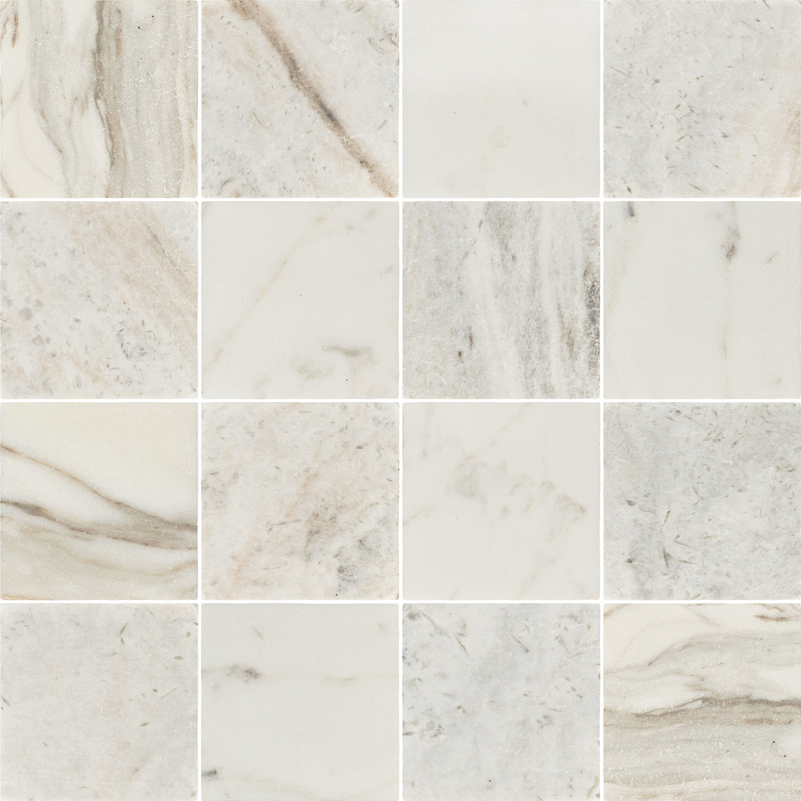 Calacatta Gold 4" x 4" Tumbled & Bianco Oro 4" x 4" Tumbled Checkerboard Board