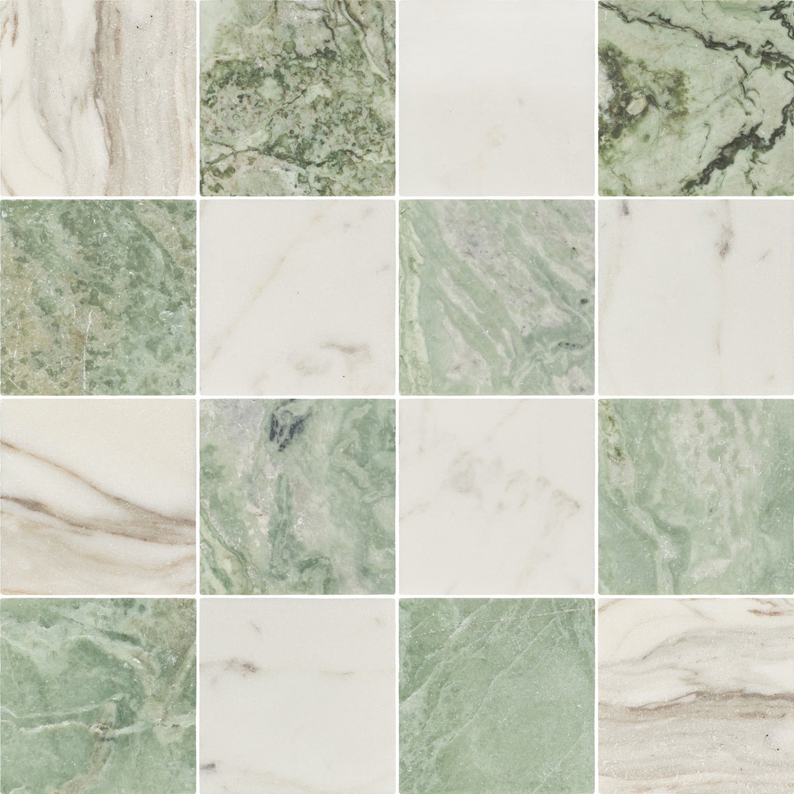 Calacatta Gold 4" x 4" Tumbled & Emerald Green 4" x 4" Tumbled Checkerboard Board